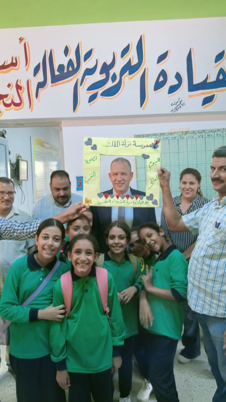 واستكمال وكيل الوزارة جولته بساحل سليم بزيارة مدرسة نزلة الملك للتعليم الأساسى والبالغ عدد فصولها 24 فصل دراسى ويشارك طلاب المدرسة والمعلمين الاحتفال باليوم العالمى للصحة النفسية بمشاركة طلاب جماعة الصحة النفسية وطلاب الأنشطة المدرسية بالمدرسة والتقد معهم الصور التذكارية وحثهم على الاهتمام بصحتهم والالتزام بلائحة الانضباط والتحفيز المدرسى ومواجهة بعض الظواهر السلبية مثل التنمر والادمان وتكثيف ندوات التوعية والمطبوعات ومجلات الحائط والمسابقات تحت إشراف المعلمين ومشرفى الأنشطة .