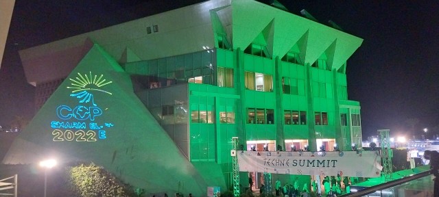 بمناسبة استضافة مصر، الدورة الـ 27 لمؤتمر الدول الأطراف فى اتفاقية الأمم المتحدة الإطارية بشأن تغير المناخ COP 27، والذى يعقد في الفترة من 6 حتى 18 نوفمبر الجاري، تم إضاءة مكتبة الإسكندرية تزامنا مع القمة.