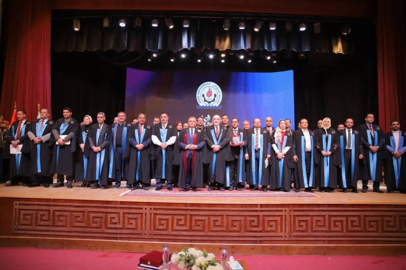 1- أ.د. محمد أمين سعد شريف - الاستاذ بقسم الانشاءات كلية تكنولوجيا وتعليم، ويتسلمها عنه أ.د. حسام الدين مصطفى عطية عميد الكلية.