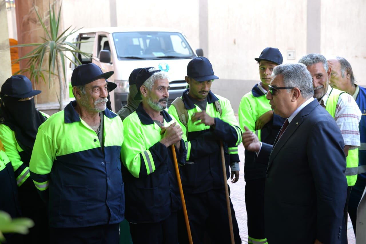 محافظ الدقهلية يلتقي عمال شركة النظافة الجديدة لدعم منظومة النظافة بحي غرب المنصورة