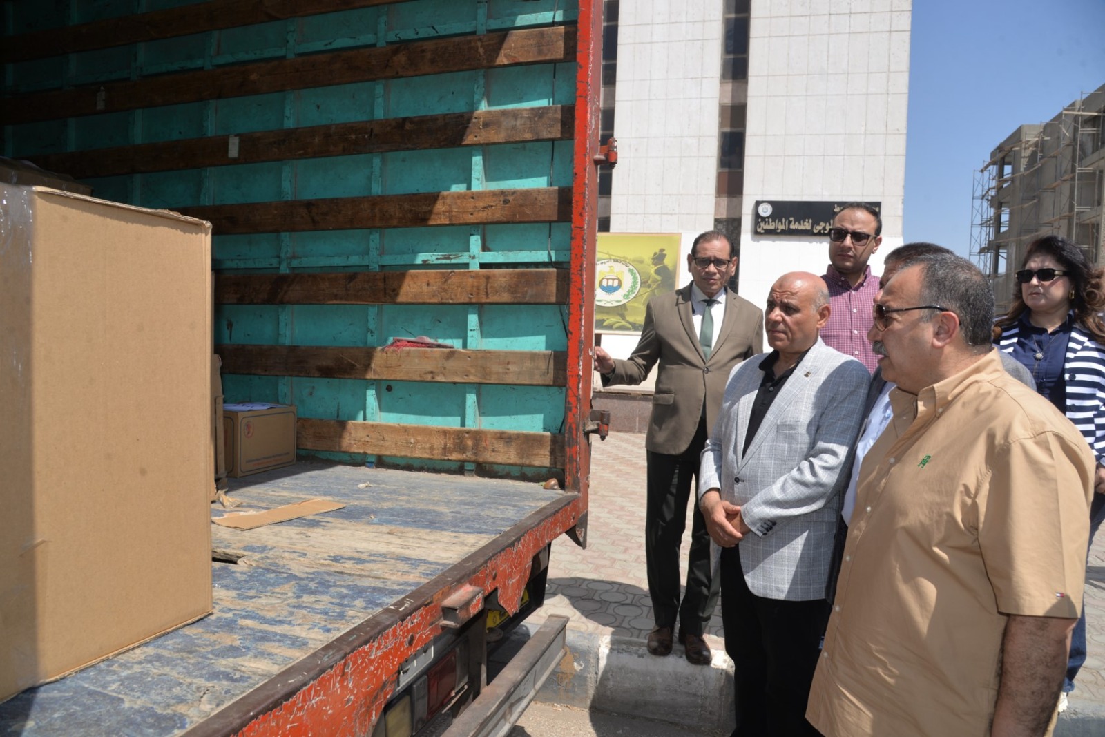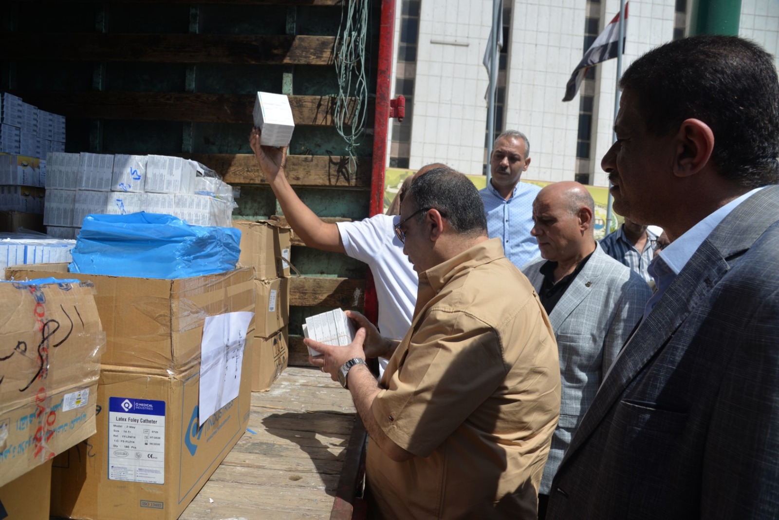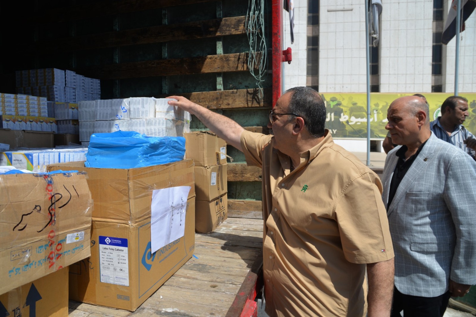 محافظ أسيوط يستقبل شحنة أدوية و10 كراسي كهربائية متحركة لتوزيعها على أقسام الطوارئ بالمستشفيات والفئات المستحقة