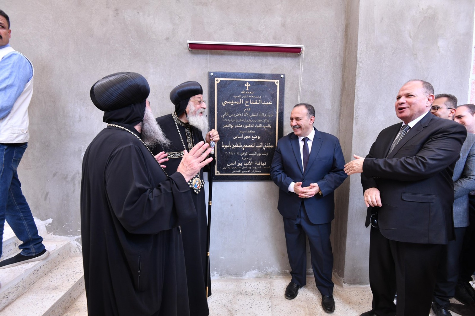 محافظ أسيوط والبابا تواضروس يضعان حجر الأساس لمستشفى القلب التخصصي بالمعلمين ومستشفى المحبة بمدينة ناصر الجديدة لخدمة أهالي الصعيد