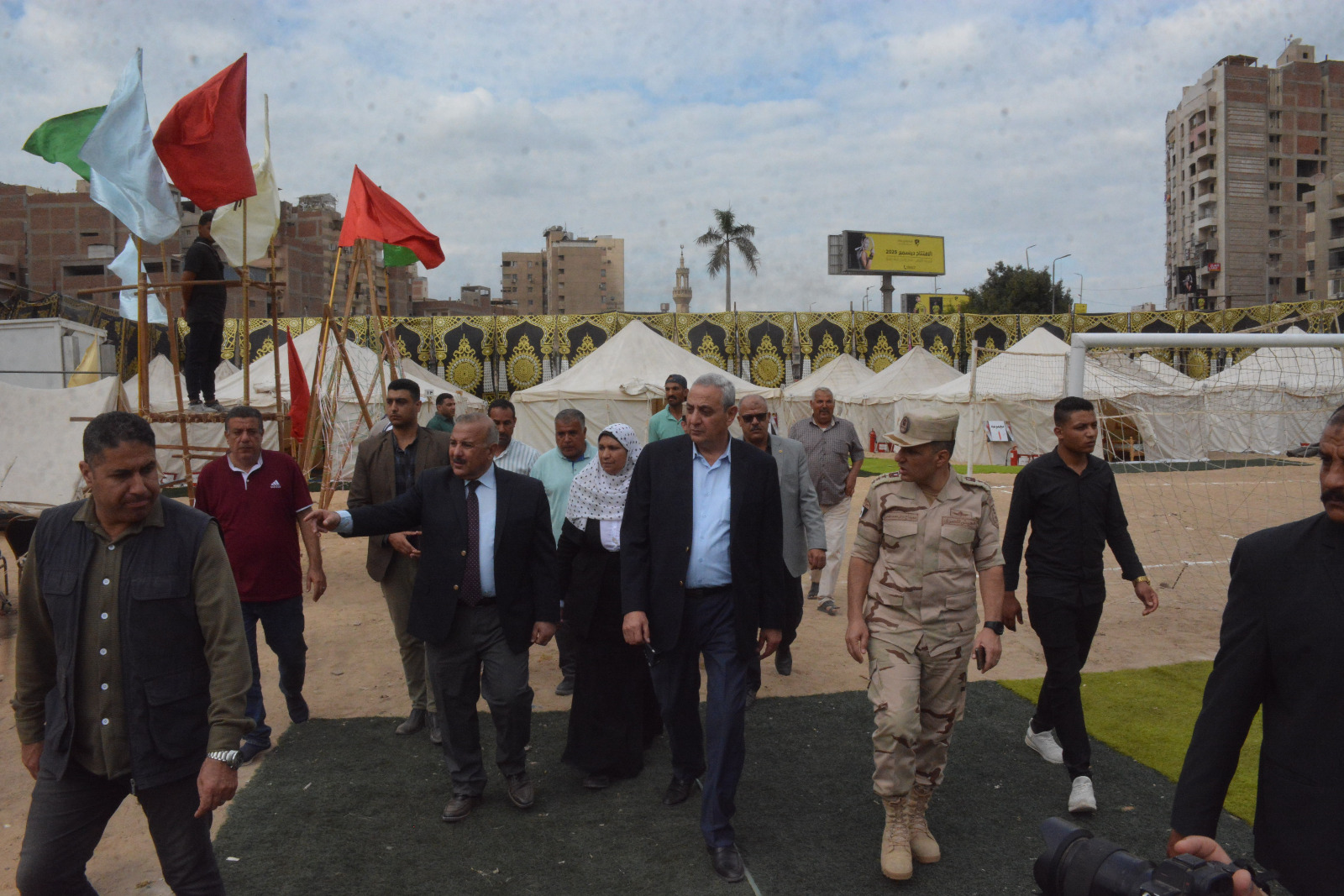 رافق المحافظ خلال الجولة اللواء أحمد أنور السكرتير العام للمحافظة، والعميد أركان حرب وائل فتحي المستشار العسكري للمحافظة، إلى جانب رؤساء المراكز والمدن والأحياء، ومديري المديريات الخدمية والجهات المشاركة، حيث اطلع على جاهزية المعسكر ومكوناته الأساسية.