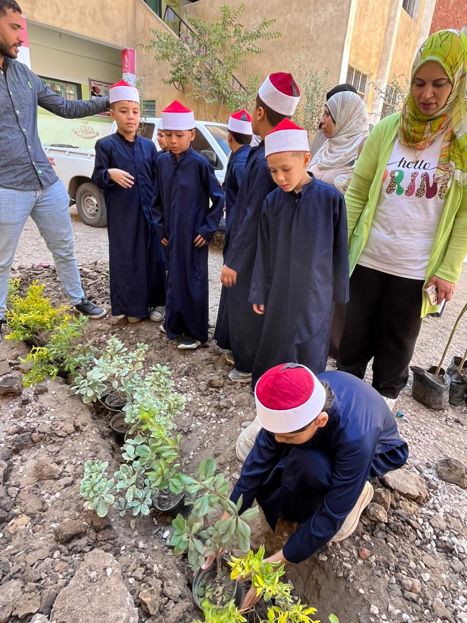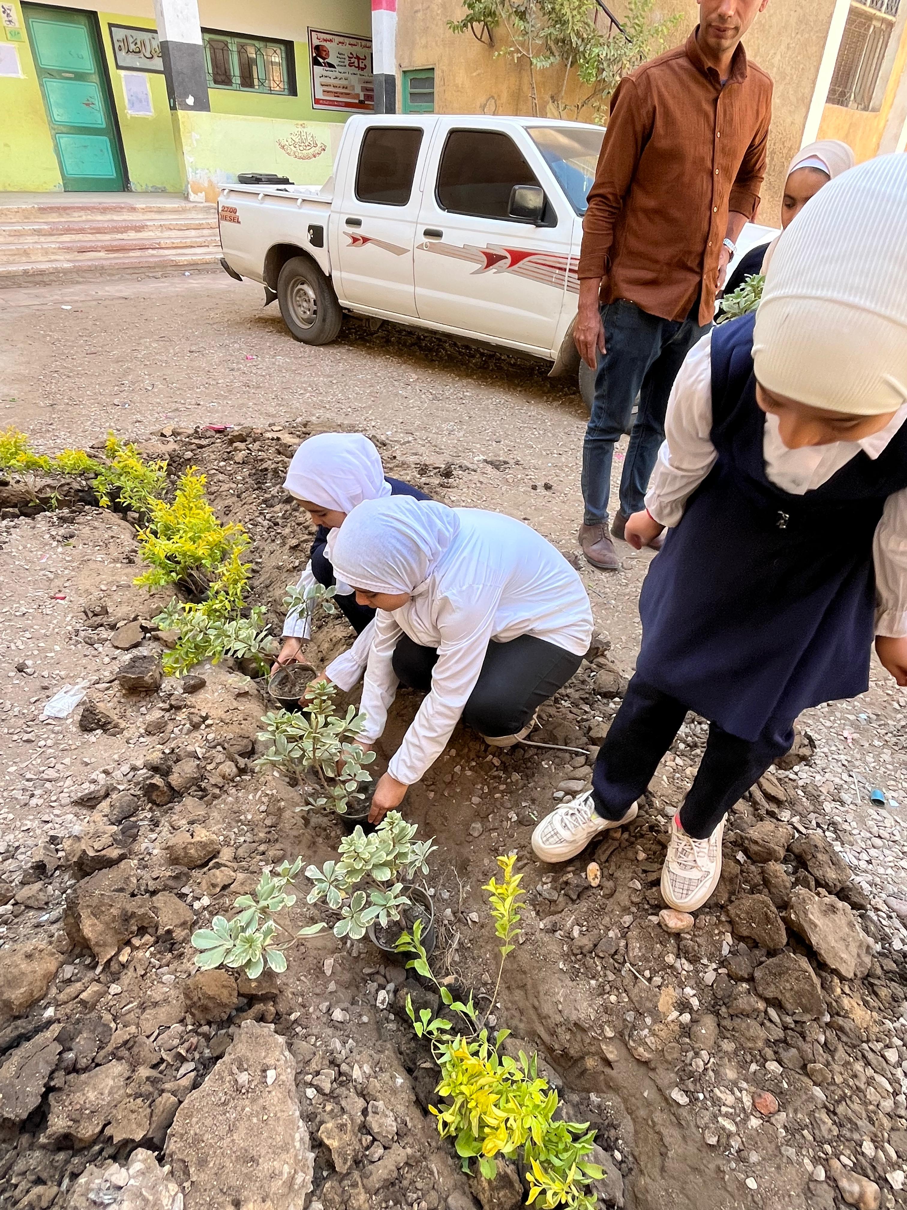 متابعة خطة التوعية وزراعة مساحات خضراء ببعض المدارس والمعاهد الازهرية بقرية تيرة المارة بمصرف كتشنر