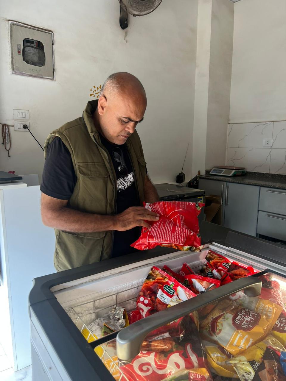 كما تم ضبط السلع التالية بدون فواتير بيع أو شراء: 100 كيلوجرام دجاج مفروم، 504 أقراص برجر بقري، 300 قرص برجر دجاج، 180 زجاجة زيت طعام، و105 سمك هارينج مدخن.