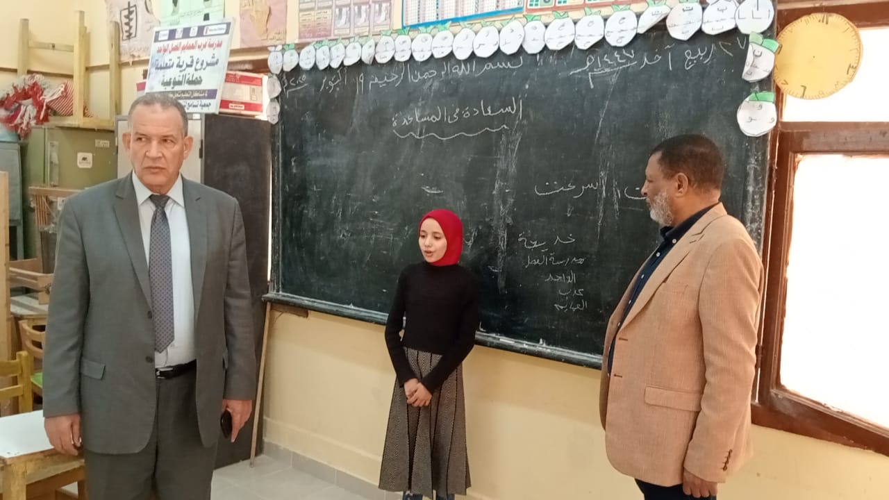 حيث تابع وكيل وزارة التربية والتعليم سير الدراسة بمدرسة عرب العمايم للفصل الواحد والتى تقع على أطراف قرية عرب العمايم بالقرب من الجبل الغربى بمنفلوط والتقى العاملين بالمدرسة والطالبات واختبر مستوى الطالبات فى القراءة والكتابة مشيدا بمستواهن كما استمع إلى بعض الطالبات الحافظات للقرآن الكريم موجها لهن الشكر وللقائمين على المدرسة التابعة لقسم التعليم المجتمعى بالإدارة .