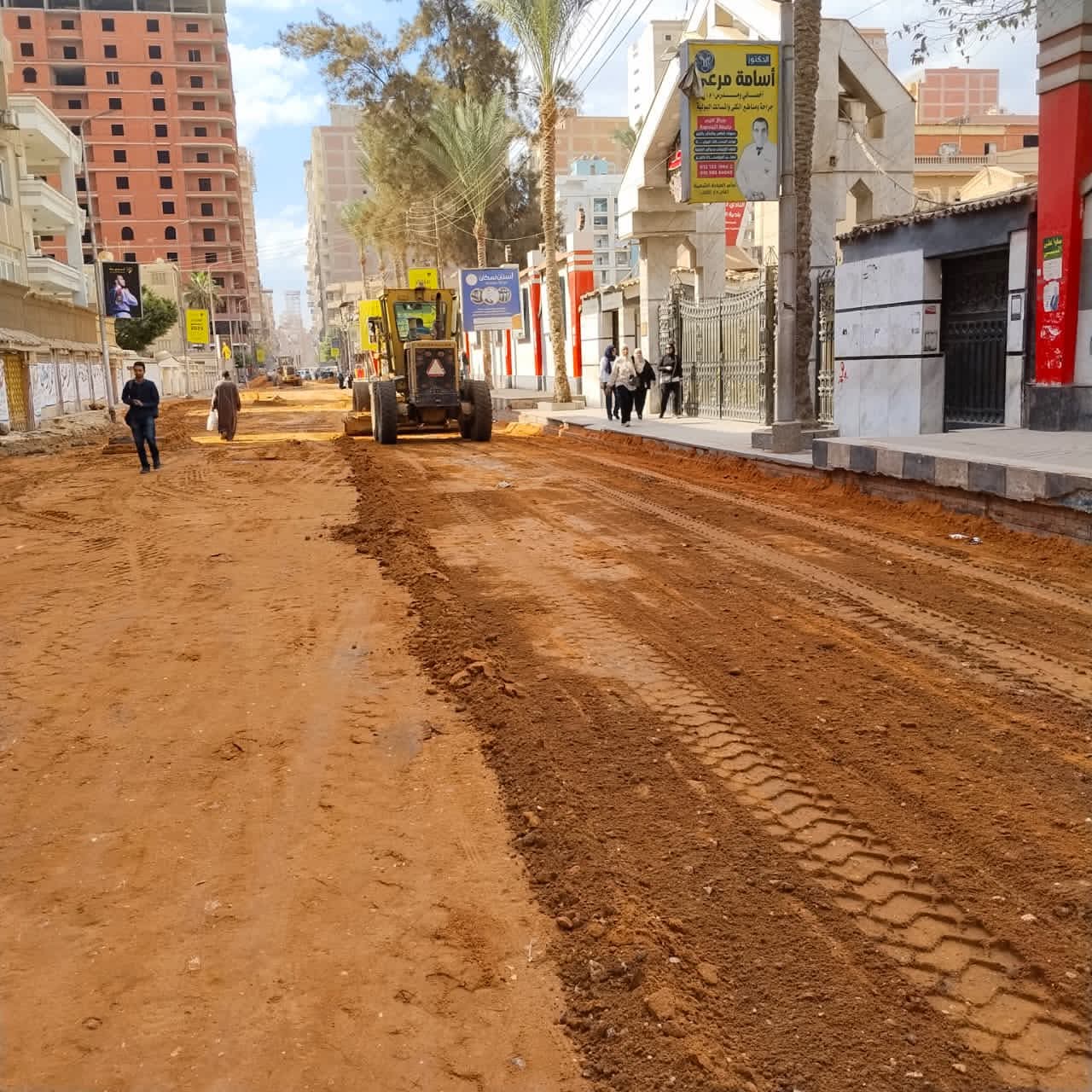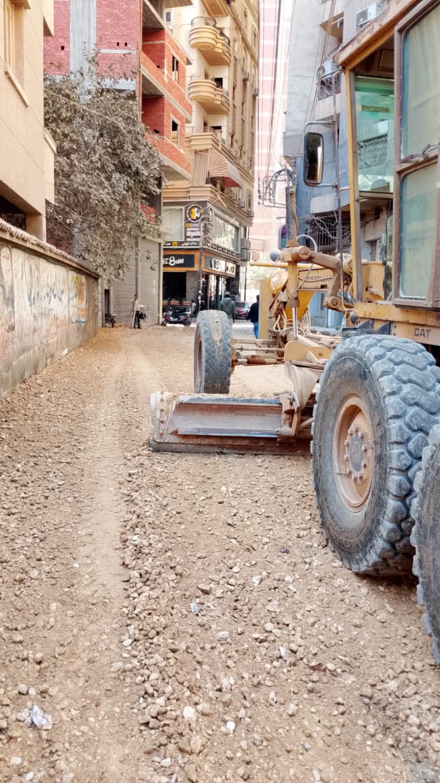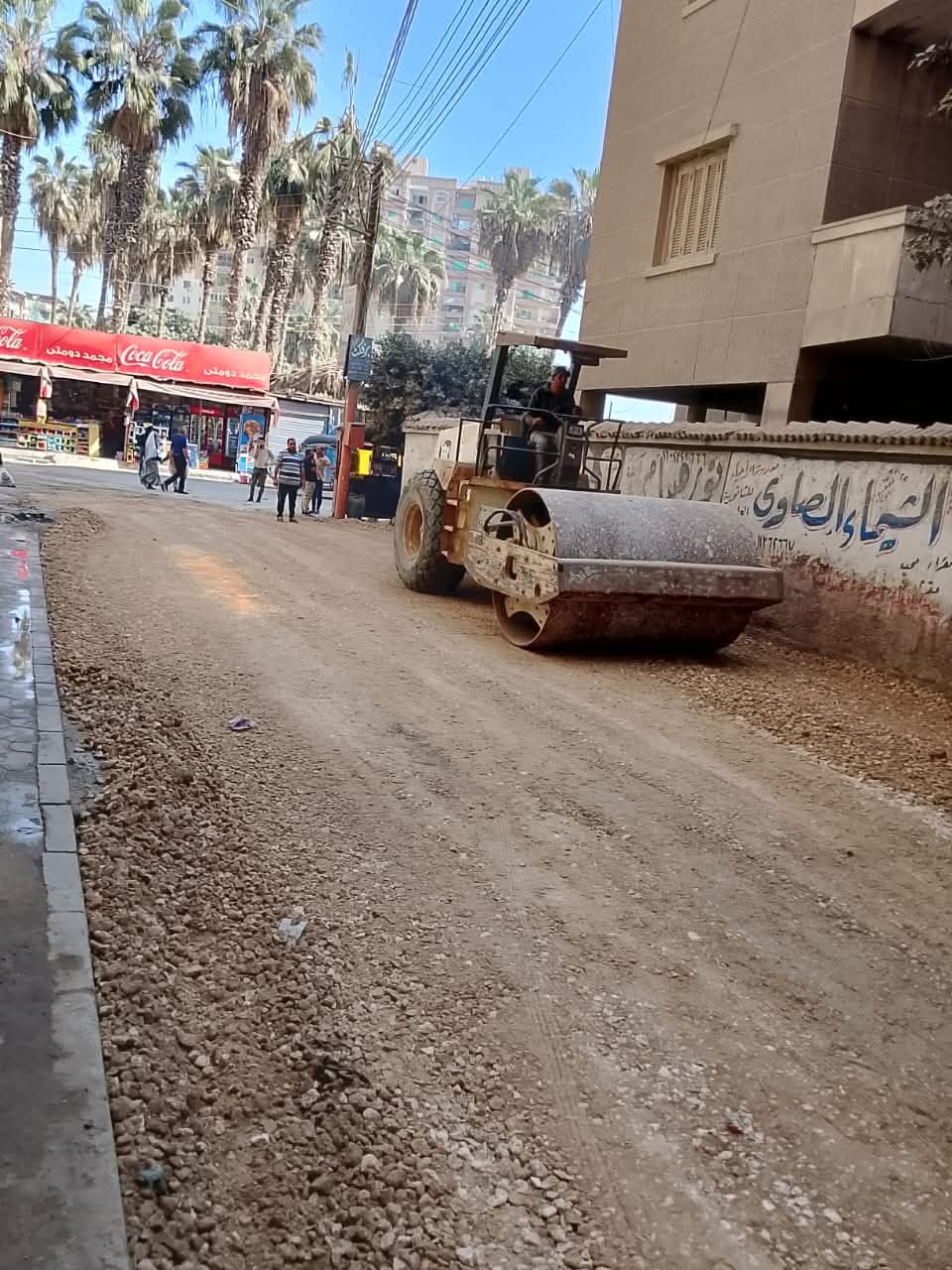 بعد الانتهاء من إحلال وتجديد خط المياه بدء تنفيذ طبقة الأساس ضمن أعمال رصف شارع الجلاء لتطوير البنية التحتية وتحسين الحركة المرورية