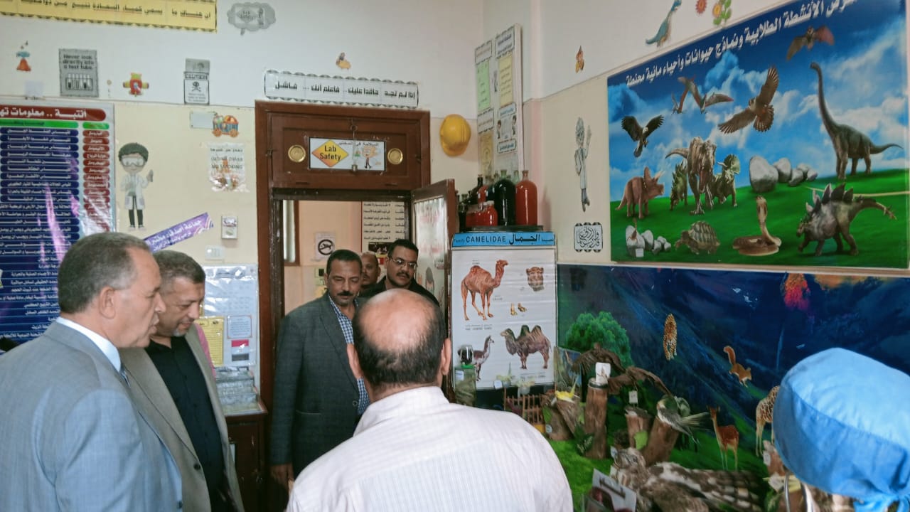 كما تابع فصول مدرسة عزبة خلف الإعدادية المشتركة البالغ عدد فصولها 7 فصول دراسية بحضور ابراهيم عقيلى مدير المدرسة وزارة معامل المدرسة ومختبر العلوم وغرفة تحضير مختبر العلوم وشاهد بانوراما معرض العلوم بالمدرسة ومعرض الأنشطة الطلابية ونماذج حيوانات واحياء مائية محنطة وبعض الإبتكارات العلمية المتميزة والتى يشرف عليها حسين محمود امين المعمل .