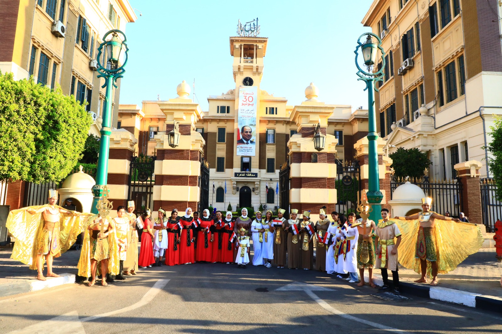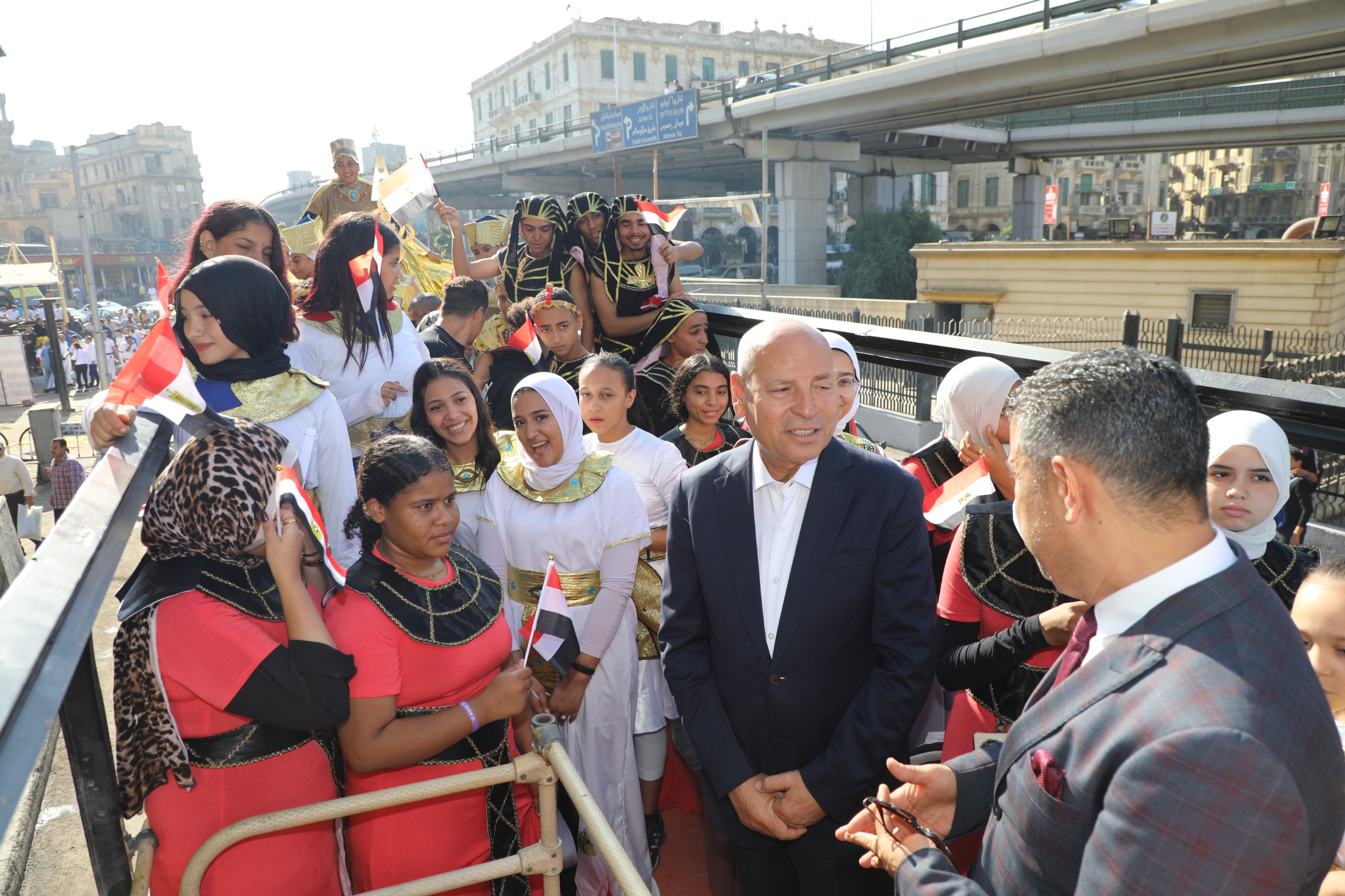 ويشارك فى جولات الأتوبيسات المفتوحة عدد من شباب وفتيات مراكز الشباب بالقاهرة يرتدون الزى الفرعونى، ويحملون أعلام مصر.
