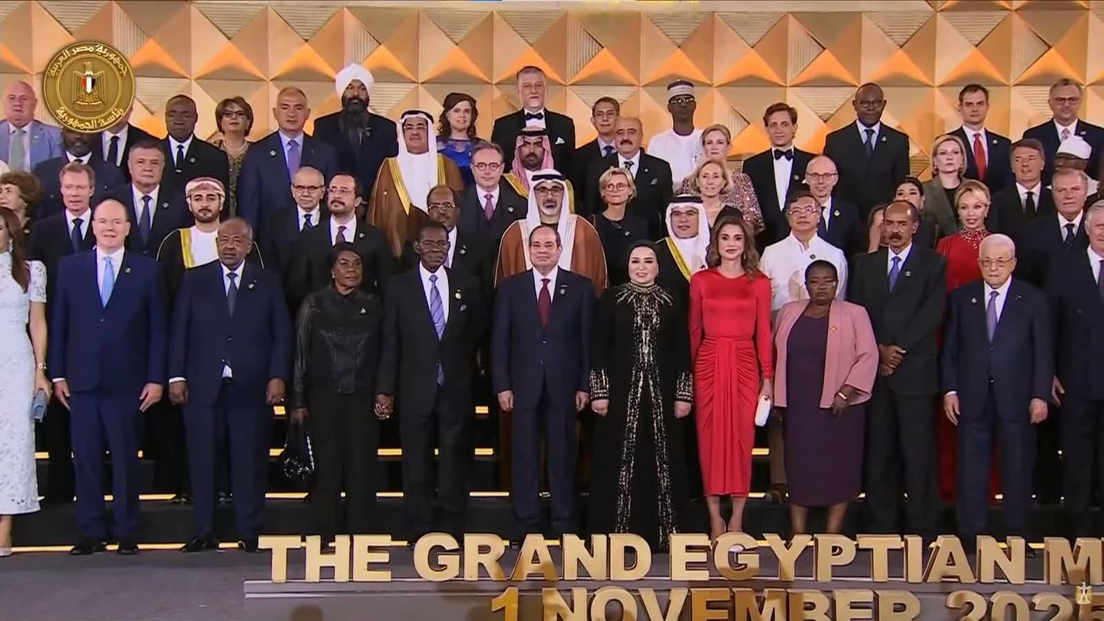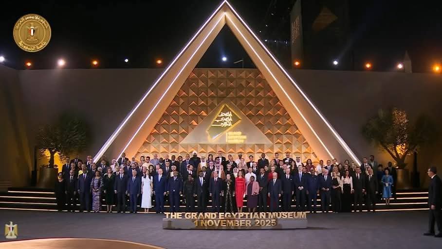 في مشهد يعكس مكانة مصر الدولية والإقليمية زعماء وملوك وأمراء العالم يحيطون بالرئيس عبد الفتاح السيسي وقرينته داخل المتحف المصري الكبير