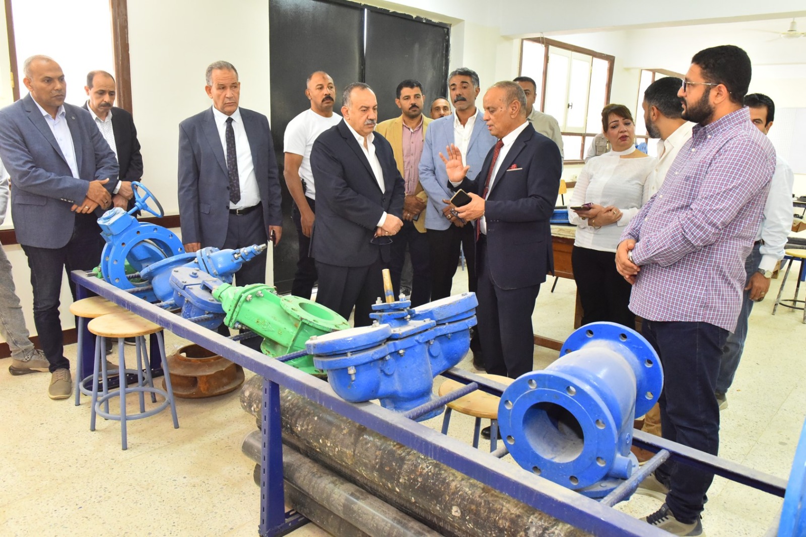 كما تفقد المحافظ ورشتي الشبكات والمحطات، واستمع إلى شرح من المهندس محمود شحاتة حول تخصصات المدرسة التي تشمل تشغيل وصيانة محطات وشبكات مياه الشرب والصرف الصحي، بالإضافة إلى معالجة وضبط جودة المياه. وأوضح أن المدرسة تضم 9 فصول دراسية بإجمالي 223 طالبًا موزعين على الصفوف الثلاثة.