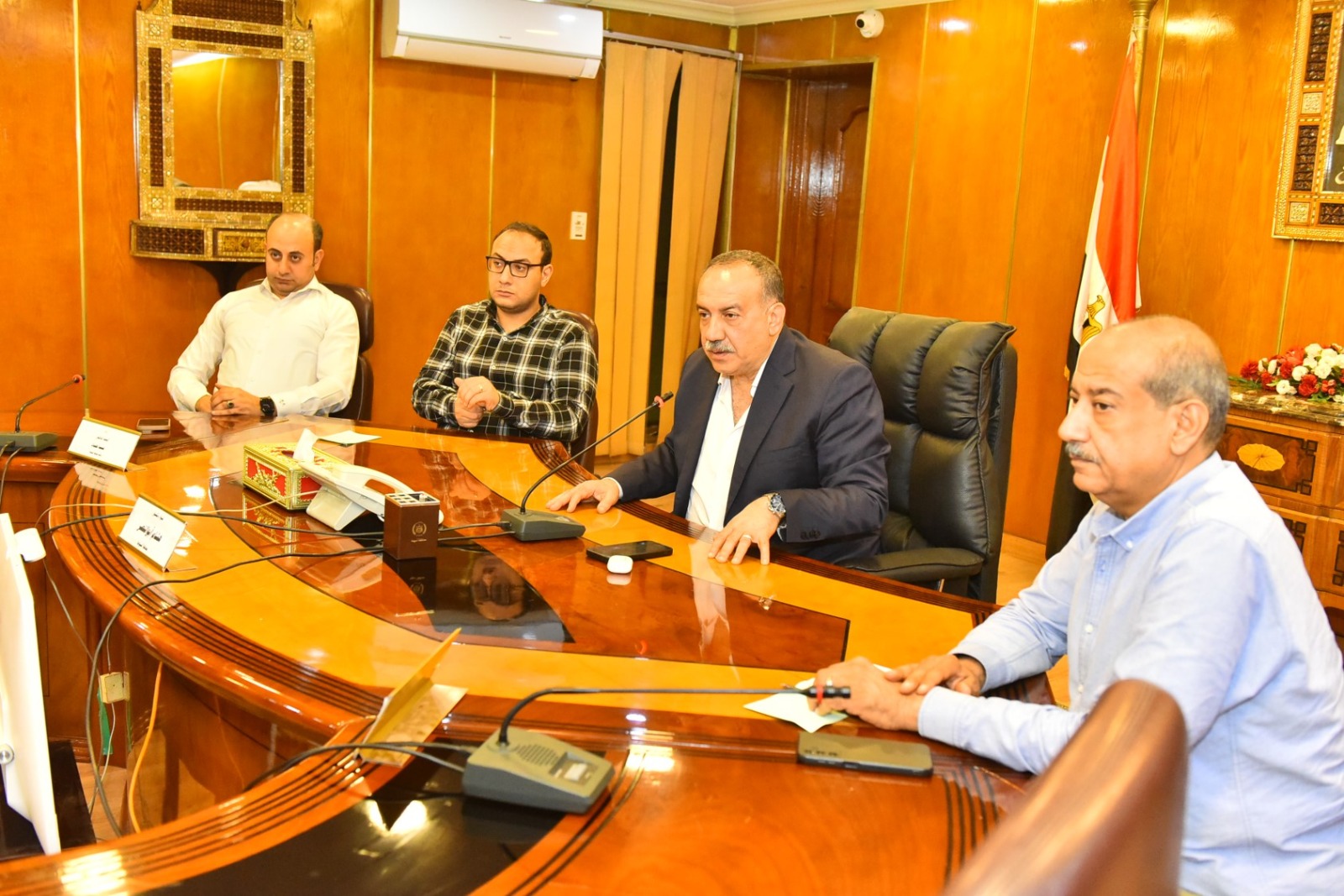 جاء ذلك خلال الاجتماع الموسع الذي عقده المحافظ مع رؤساء المراكز والأحياء، بحضور الدكتور مينا عماد نائب المحافظ والأستاذ خالد عبدالرؤوف السكرتير العام المساعد والمستشار محمد محمود كامل المستشار القانوني للمحافظة، وذلك لمناقشة الموقف التنفيذي للخطط الاستثمارية ومتابعة أعمال النظافة والتجميل وتطوير المرافق العامة، في إطار المتابعة المستمرة لمعدلات الأداء ومستوى الخدمات المقدمة للمواطنين.