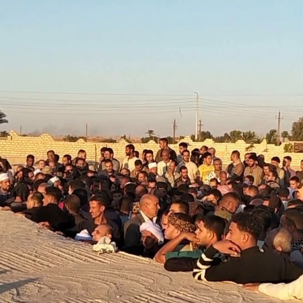 بالصور أهالى أسيوط يؤدون صلاة الجنازة على جثامين 4 ضحايا بحادث إسماعيل الليثى