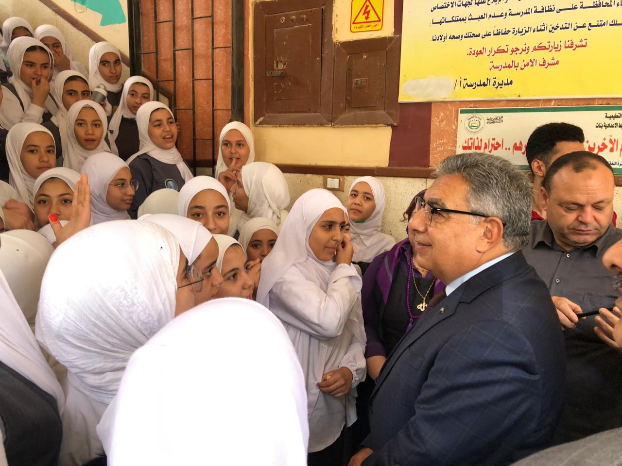 بالصور .. محافظ الدقهلية في زيارة مفاجئة لمدرسة نوسا الغيط الإعدادية بأجا لمتابعة سير العملية التعليمية