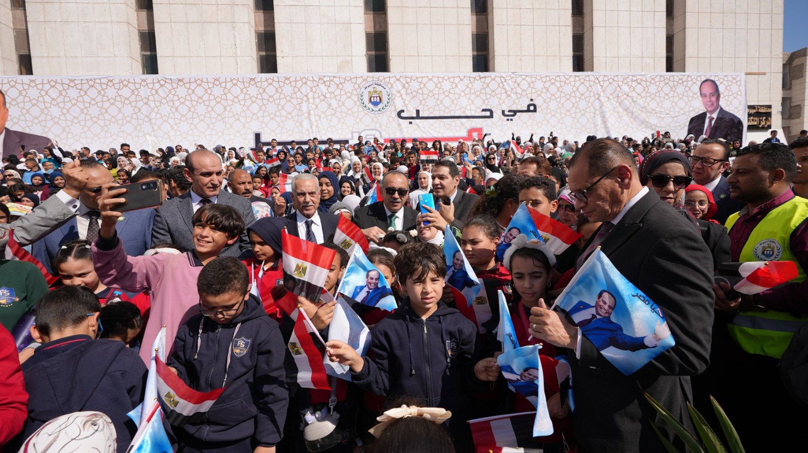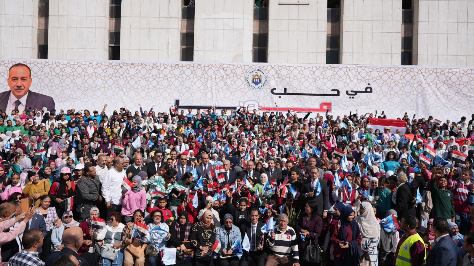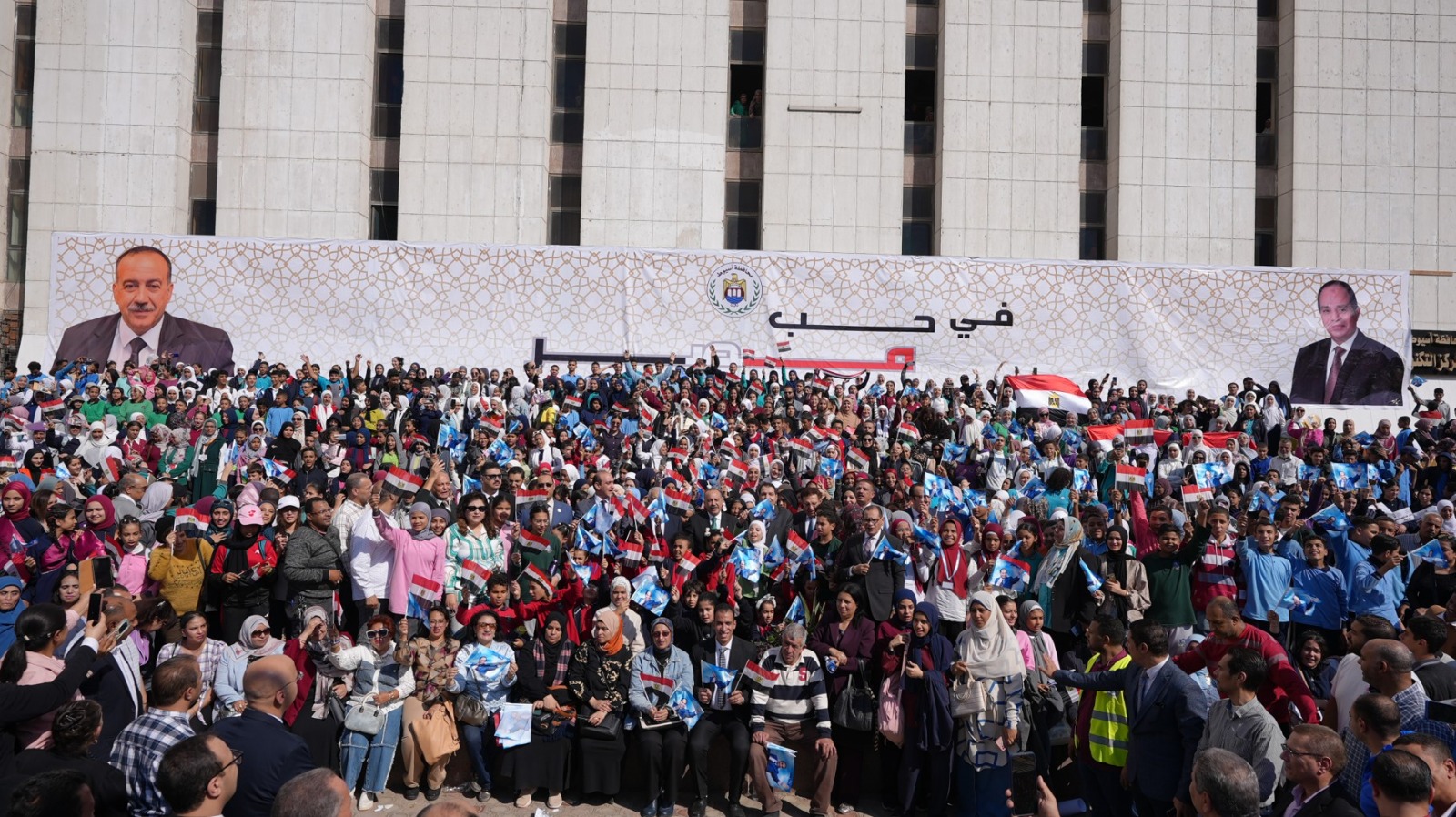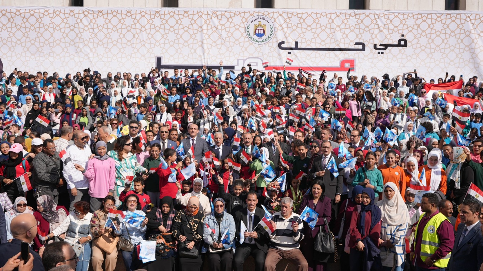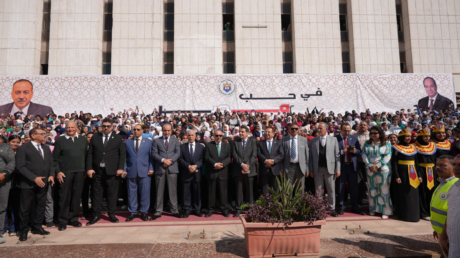 وعقب ختام البرنامج، شهد محيط ديوان عام المحافظة مشهدًا وطنيًا لافتًا، حيث تجمع آلاف المتدربين في لقطة جماعية رسمية عكست روح الانتماء والفخر. واصطف المشاركون في ساحة الديوان وسط أجواء احتفالية تزينت بالأعلام المصرية وصور الرئيس عبدالفتاح السيسي، بينما ارتفعت الأغاني الوطنية في الخلفية لتضفي على المشهد طابعًا مميزًا يجسد وحدة الشباب وحماسهم.