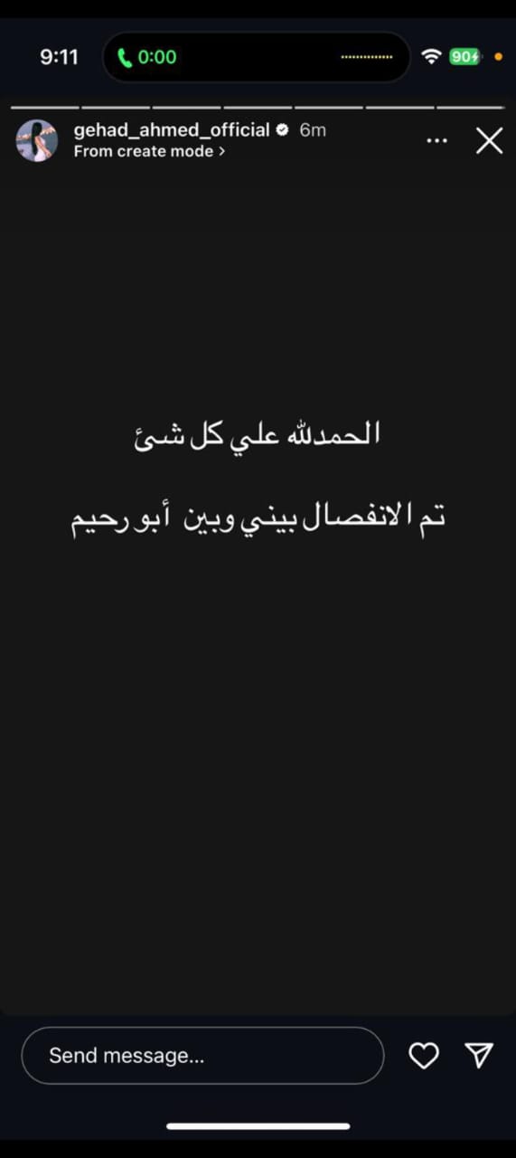 وكتبت جهاد " تم الانفصال بيني وبين أبو رحيم ولم تكشف عن تفاصيل أخرى تخص أسباب الانفصال أو ظروفه".