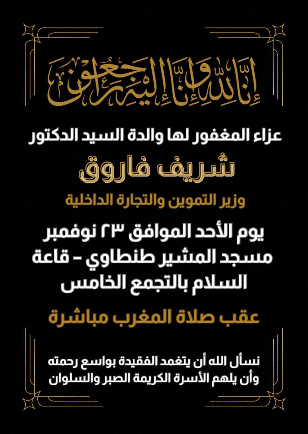 الرئيسية السوشيال دفتر عزاء والدة الدكتور شريف فاروق وزير التموين والتجارة الداخلية شارك معنا فى تقديم واجب العزاء السبت 22 نوفمبر 2025 11:57 صـ 1 جمادى آخر 1447 هـ جمال الدالى عزاء والدة وزير التموين والتجارة الداخلية