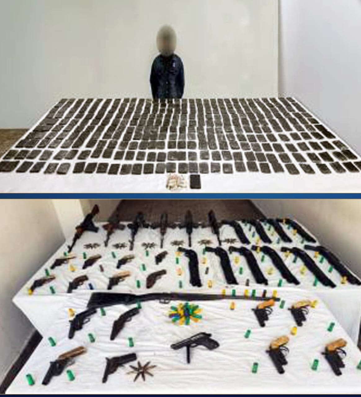 فى إطار مواصلة وزارة الداخلية توجيه الضربات الإستباقية للبؤر الإجرامية جالبى ومتجرى المواد المخدرة والأسلحة النارية غير المرخصة فقد أكدت معلومات وتحريات قطاعى الأمن العام ومكافحة المخدرات والأسلحة والذخائر غير المرخصة بالتنسيق مع أجهزة الوزارة المعنية قيام بؤر إجرامية بنطاق عدد من المحافظات تضم عناصر جنائية شديدة الخطورة) بجلب كميات من المواد المخدرة والأسلحة النارية غير المرخصة تمهيداً للإتجار بها عقب تقنين الإجراءات تم إستهدافهم بمشاركة قطاع الأمن المركزى، وقد أسفر التعامل عن مصرع عنصر جنائى شديد الخطورة - محكوم عليه بالإعدام فى جناية "قتل عمد" وبالسجن فى جنايات "إتجار بالمخدرات زوزسلاح نارى ، إطلاق أعيرة نارية بنطاق محافظة "أسيوط" وضبط باقى عناصر تلك البؤر.. وبحوزتهم قرابة 221 كيلو جرام من المواد المخدرة المتنوعة "هيدرو ، حشيش ، شابو ، إستروكس ، شادو وبودر وكمية من الأقراص المخدرة والمؤثرة - 59 قطعة سلاح نارى "رشاش ، 16بندقية آلية و20 بندقية خرطوش و17 فرد خرطوش ، 5 طبنجات هذا وتقدر القيمة المالية للمواد المخدرة المضبوطة قرابة 38 مليون جنيه تم إتخاذ الإجراءات القانونية.