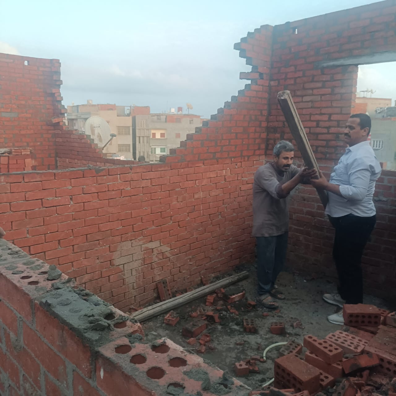 خامسا : مركز تمي الأمديد : إزالة لحالة بناء غرفة خارج الحيز بمنشأة صبري ابو علم زمام الإصلاح الزراعي علي مساحة 12 متر تقريباً .