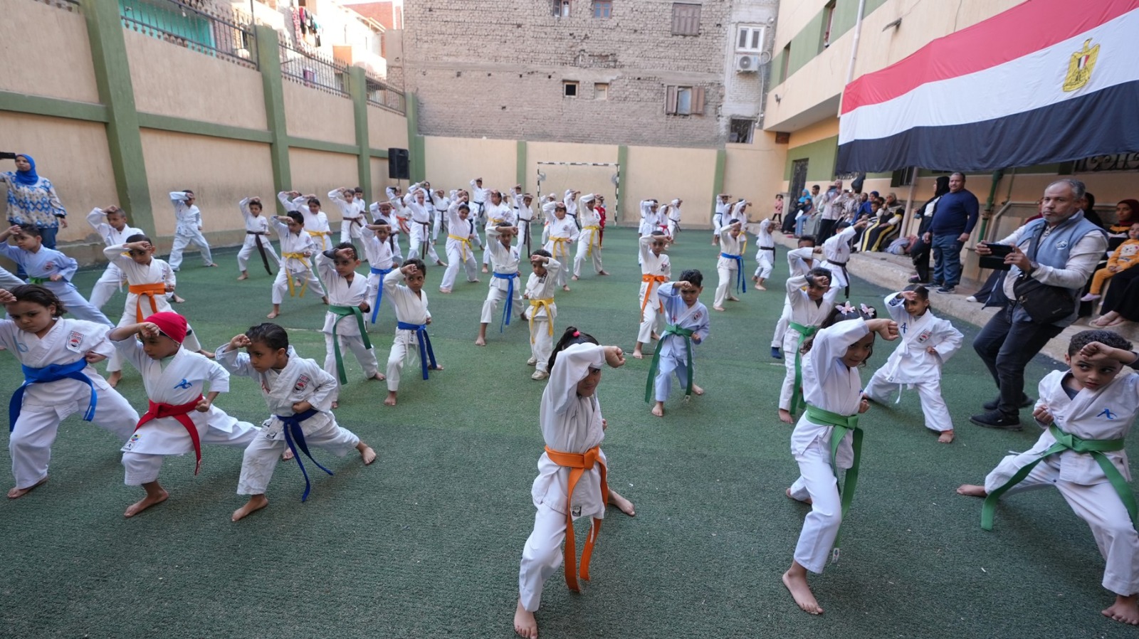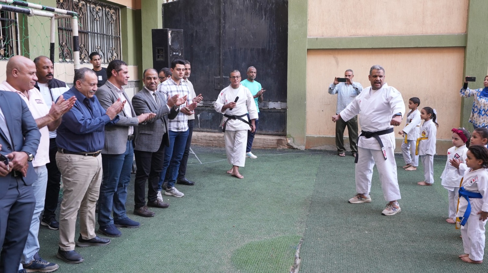 وخلال الافتتاح، تابع محافظ أسيوط عرضًا رياضيًا لفريق الكاراتيه بالنادي شارك فيه أكثر من 200 لاعب من سن 3 سنوات وحتى 20 سنة، وقدم اللاعبون عروضًا مميزة عكست مستوى التدريب داخل النادي، وأشاد بالأداء القوي وروح الانضباط، معلنًا منح مكافآت مالية قدرها 100 جنيه لكل لاعب مشارك في العرض، و500 جنيه للمدربين والإداريين تقديرًا لجهودهم في دعم المواهب الشابة.