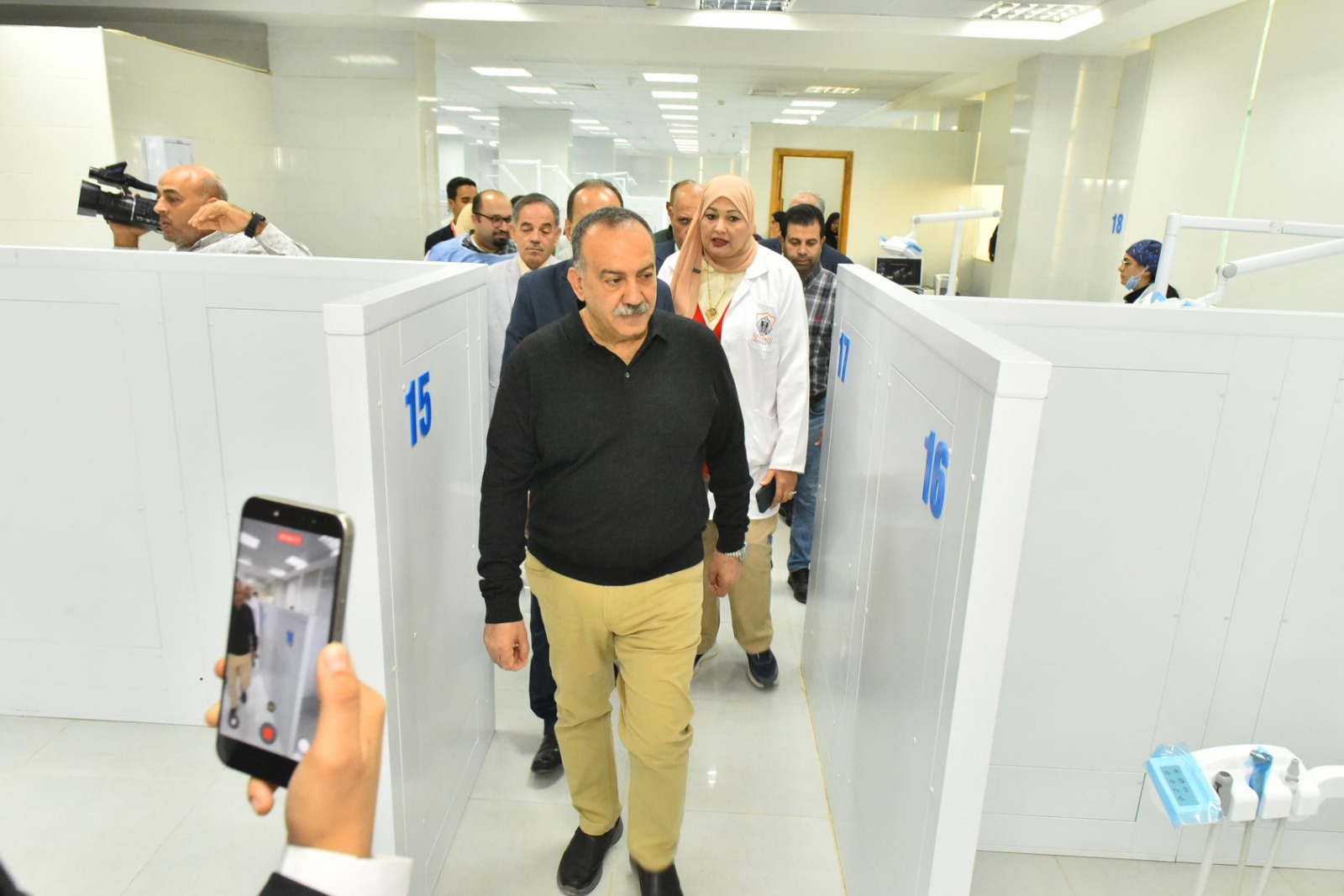 بدأ المحافظ جولته بزيارة مستشفى وعيادات كلية طب الفم والأسنان، حيث تفقد عيادات جراحة الفم والتخدير واللثة، وتابع أعمال الكشف المجاني على المرضى، واستمع إلى شرح من عميدة الكلية حول الإمكانات الطبية الحديثة المتوافرة، والتي تشمل نحو 100 كرسي لخدمة مختلف تخصصات طب الأسنان، من علاج العصب والتركيبات إلى علاج الأطفال، وتستقبل العيادات يوميًا نحو 150 حالة من أبناء المحافظة والعاملين بالجامعة، بالإضافة إلى مشاركة فرق الكلية في القوافل الطبية بالمناطق الأكثر احتياجًا.
