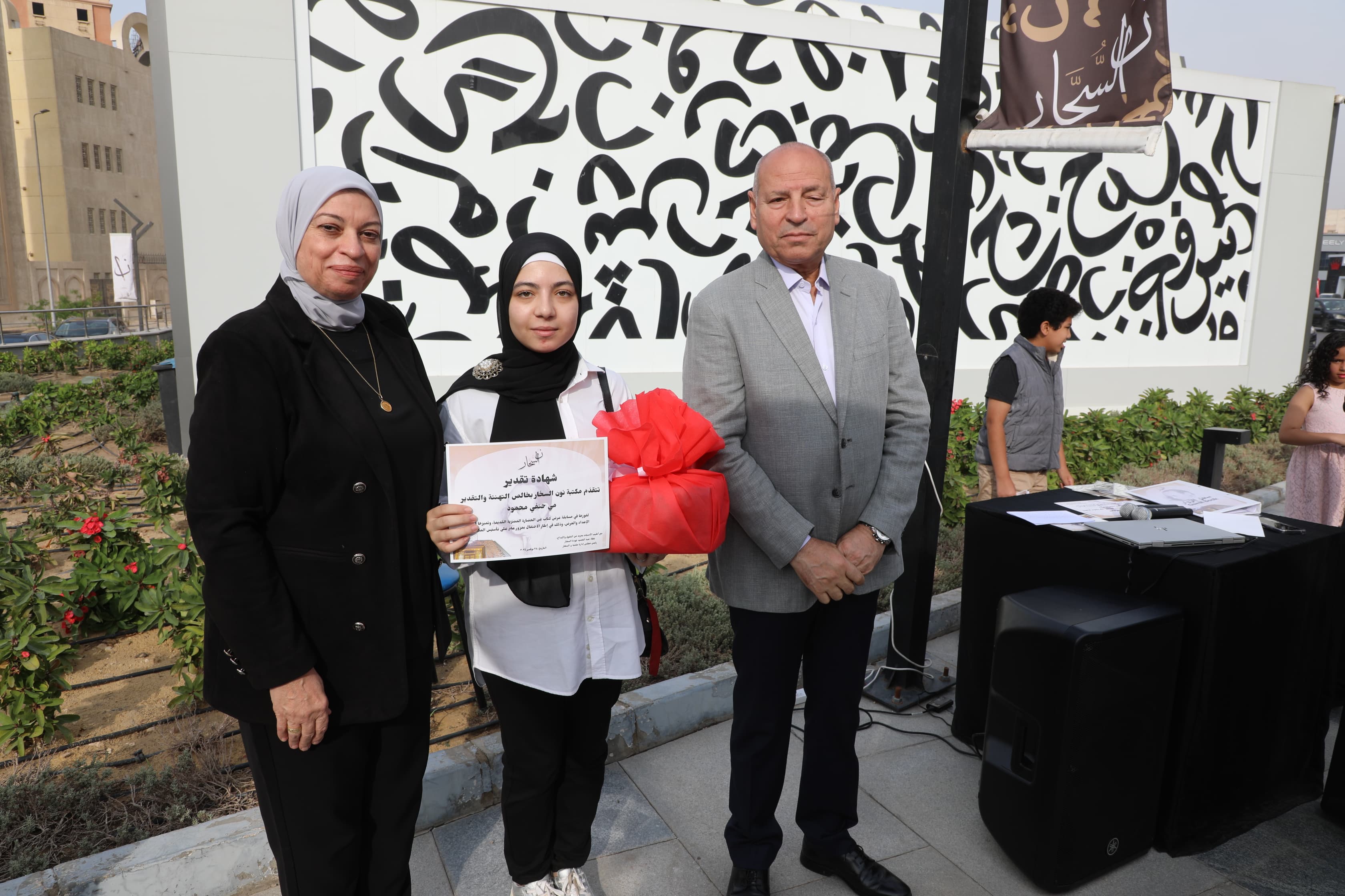 وقام محافظ القاهرة خلال الاحتفالية بتكريم مجموعة من طلبة وطالبات مدرسة نبوية موسى بالحي الثامن مدينة نصر الفائزين فى مسابقة عرض كتاب عن الحضارة المصرية القديمة، وكتابة مقال عن افتتاح المتحف المصري الجديد والتى اقيمت في اطار مسابقة المشروع الوطني للقراءة، كما قام بتكريم عدد من اعضاء لجنة تحكيم المسابقة .
