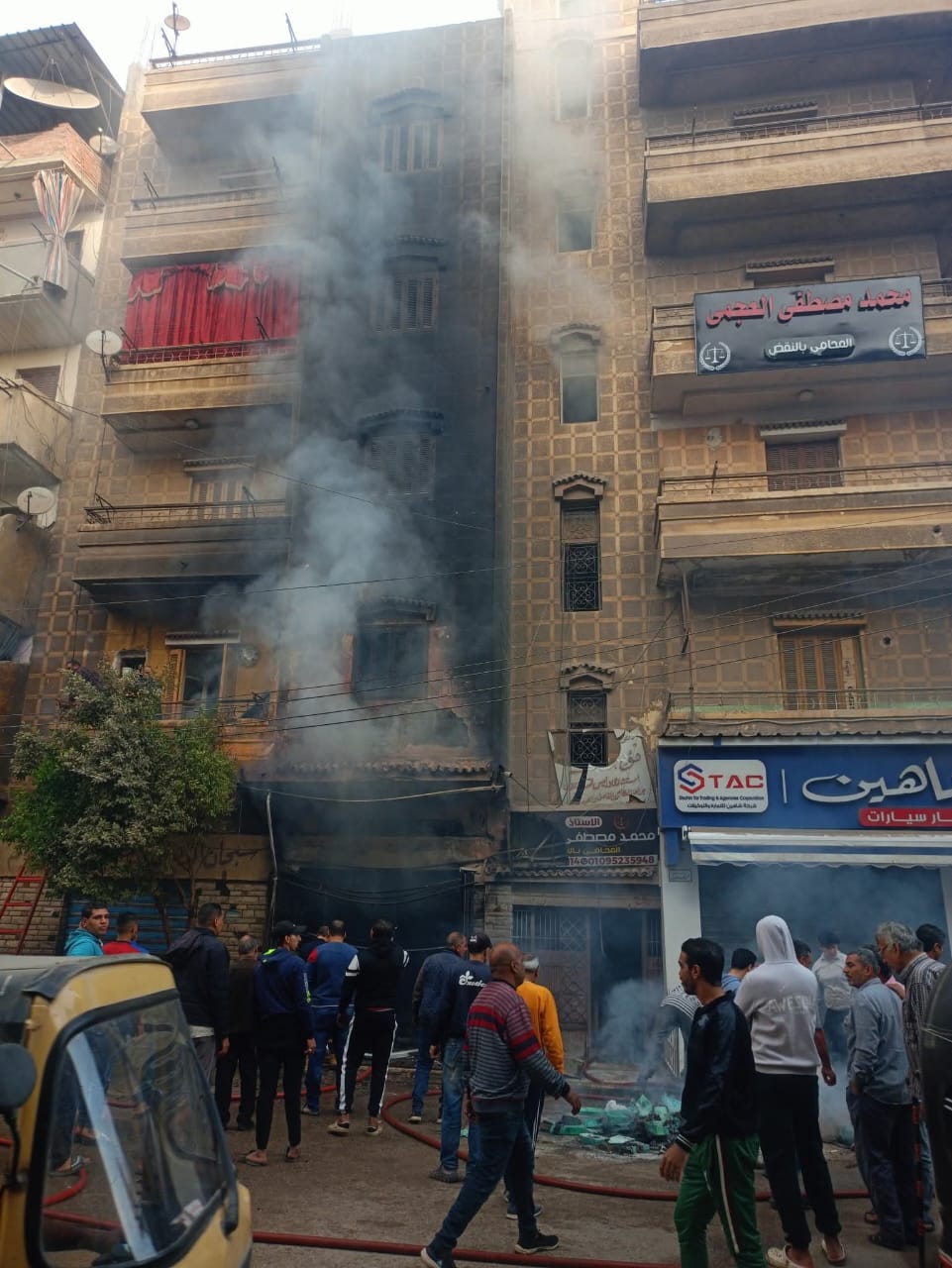عاجل ..إخماد نيران حريق هائل بمحل كماليات سيارات بالمحلة اثر ماس كهربائي مفاجىء