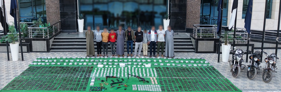 فى إطار مواصلة وزارة الداخلية توجيه الضربات الإستباقية للبؤر الإجرامية جالبى ومتجرى المواد المخدرة والأسلحة النارية غير المرخصة فقد أكدت معلومات وتحريات قطاعى الأمن العام ومكافحة المخدرات والأسلحة والذخائر غير المرخصة بالتنسيق مع أجهزة الوزارة المعنية قيام بؤر إجرامية بنطاق عدد من المحافظات تضم عناصر جنائية شديدة الخطورة بجلب كميات من المواد المخدرة والأسلحة النارية غير المرخصة تمهيداً للإتجار بها وعقب تقنين الإجراءات تم إستهدافهم بمشاركة قطاع الأمن المركزى وقد أسفر التعامل عن مصرع 4 عناصر جنائية شديدة الخطورة ومحكوم عليهم بالسجن والسجن المؤبد وعلى أحدهم بالإعدام فى جنايات " قتل عمد وشروع فى قتل ، إتجار بالمخدرات - سلاح نارى حريق عمد بنطاق محافظتى "الجيزة وقنا" وضبط باقى عناصر تلك البؤر وقد أستُشهد فرد شرطة وأُصيب ضابط خلال المواجهات وعثر بحوزة عناصر البؤر على قرابة 900 كيلو جرام من المواد المخدرة المتنوعة "حشيش ، أيس، بانجو، هيدرو ، هيروين، أفيون" و1000 قرص مخدر و92 قطعة سلاح نارى و76 بندقية آلية و12 فرد خرطوش ، بندقية خرطوش، 3 طبنجات هذا وتقدر القيمة المالية للمواد المخدرة المضبوطة قرابة (91 ) مليون جنيه وتم إتخاذ الإجراءات القانونية.