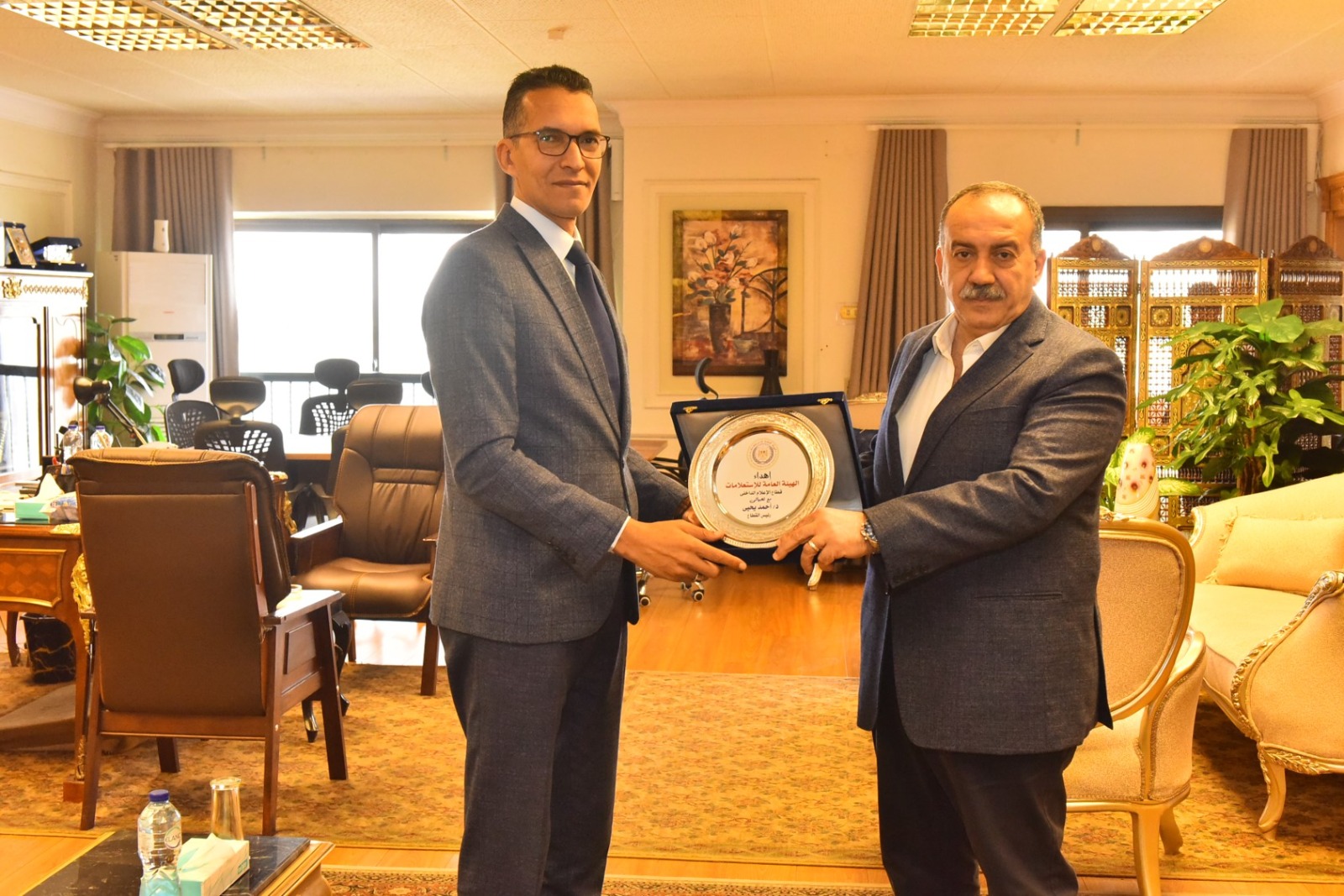 وفي ختام اللقاء، تبادل المحافظ والدكتور أحمد يحيى الدروع التذكارية تقديراً للتعاون المثمر بين الجانبين ودعم الجهود المشتركة في خدمة المواطنين.