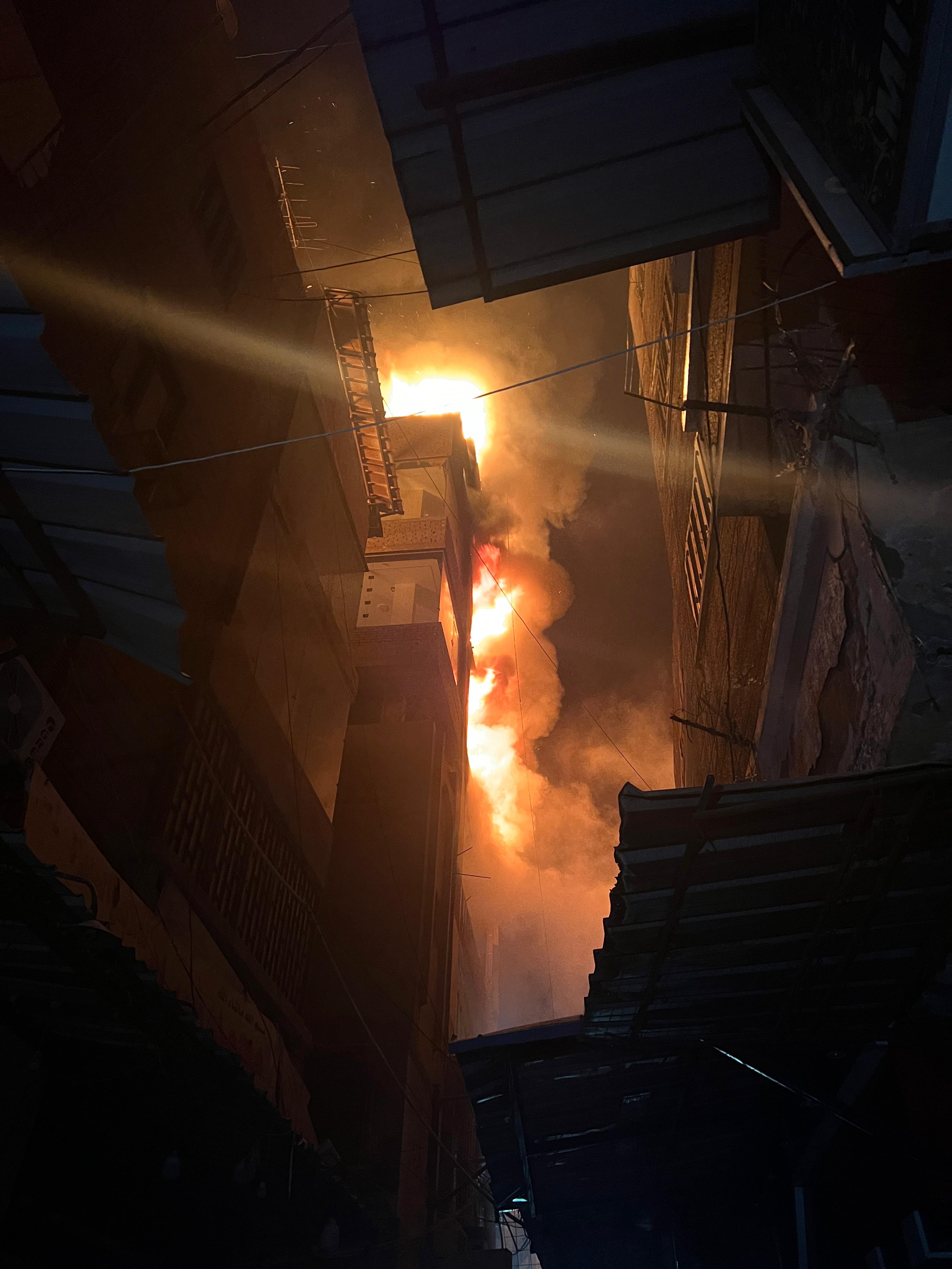 يذكر أن الحريق نشب في مخزن للملابس مكون من أربعة طوابق بمنطقة سوق الخواجات في شارع بورسعيد بالمنصورة.