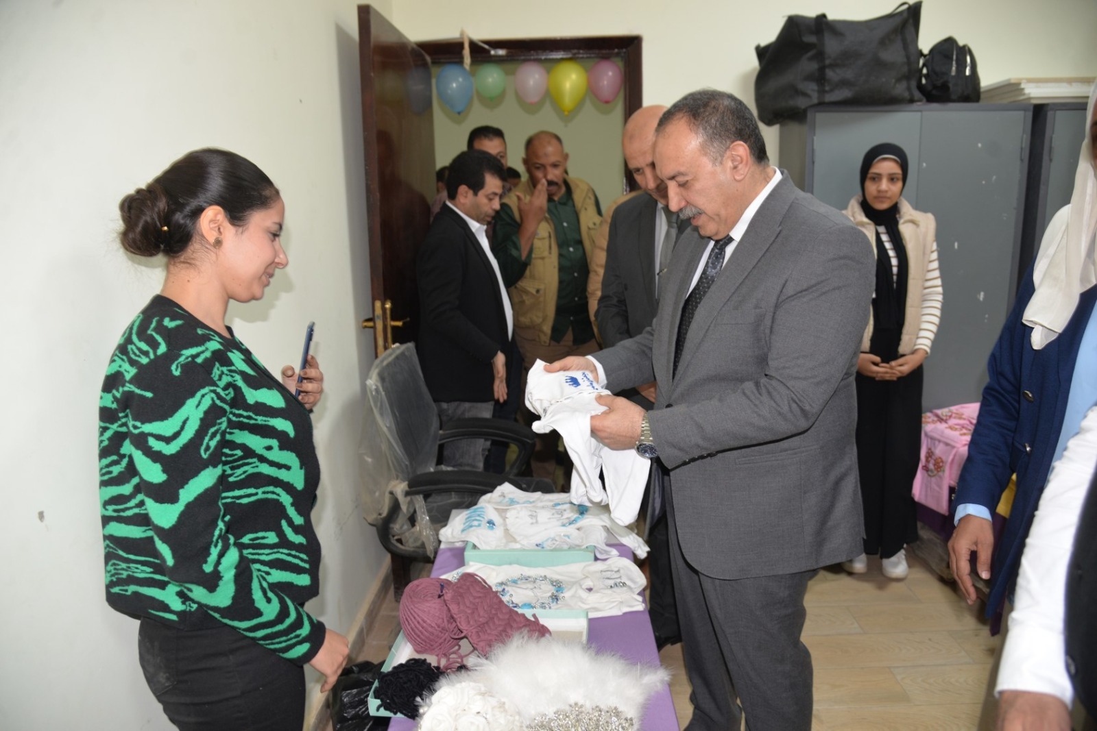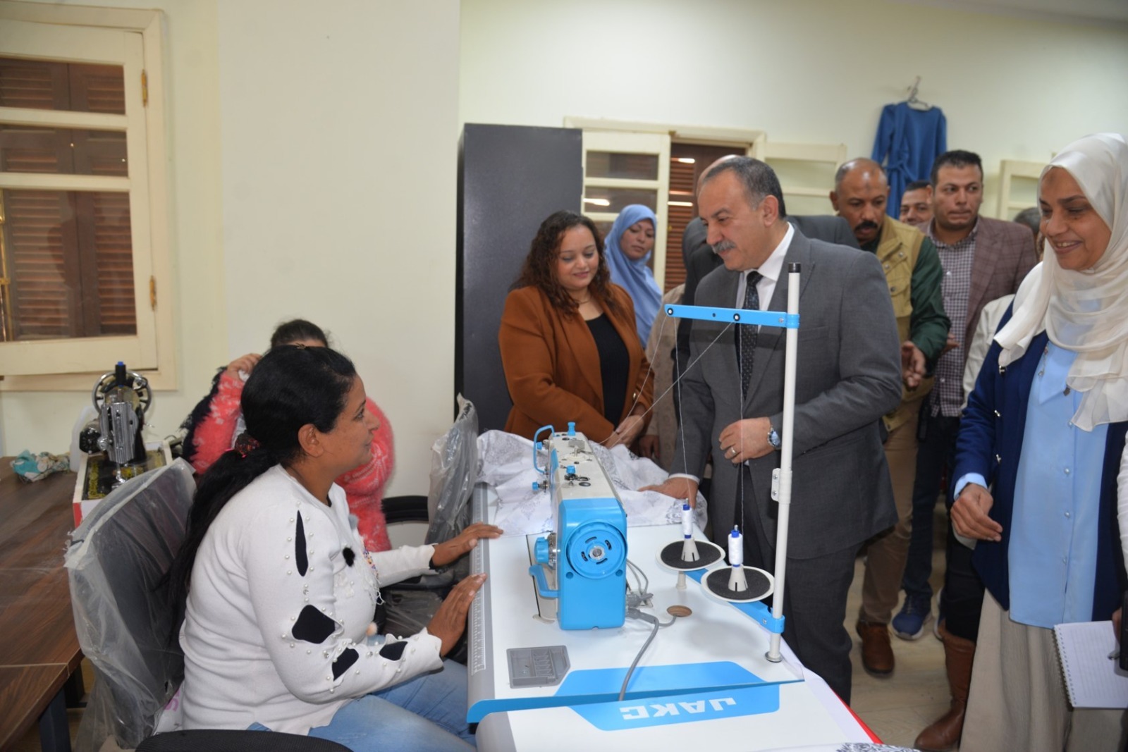 وخلال جولته داخل الورشة، اطمأن المحافظ على توافر الخامات اللازمة وسير العملية الإنتاجية، موجهًا بسرعة التعامل مع أي معوقات قد تظهر لضمان تحقيق أقصى استفادة للأهالي ورفع جودة المخرجات.
