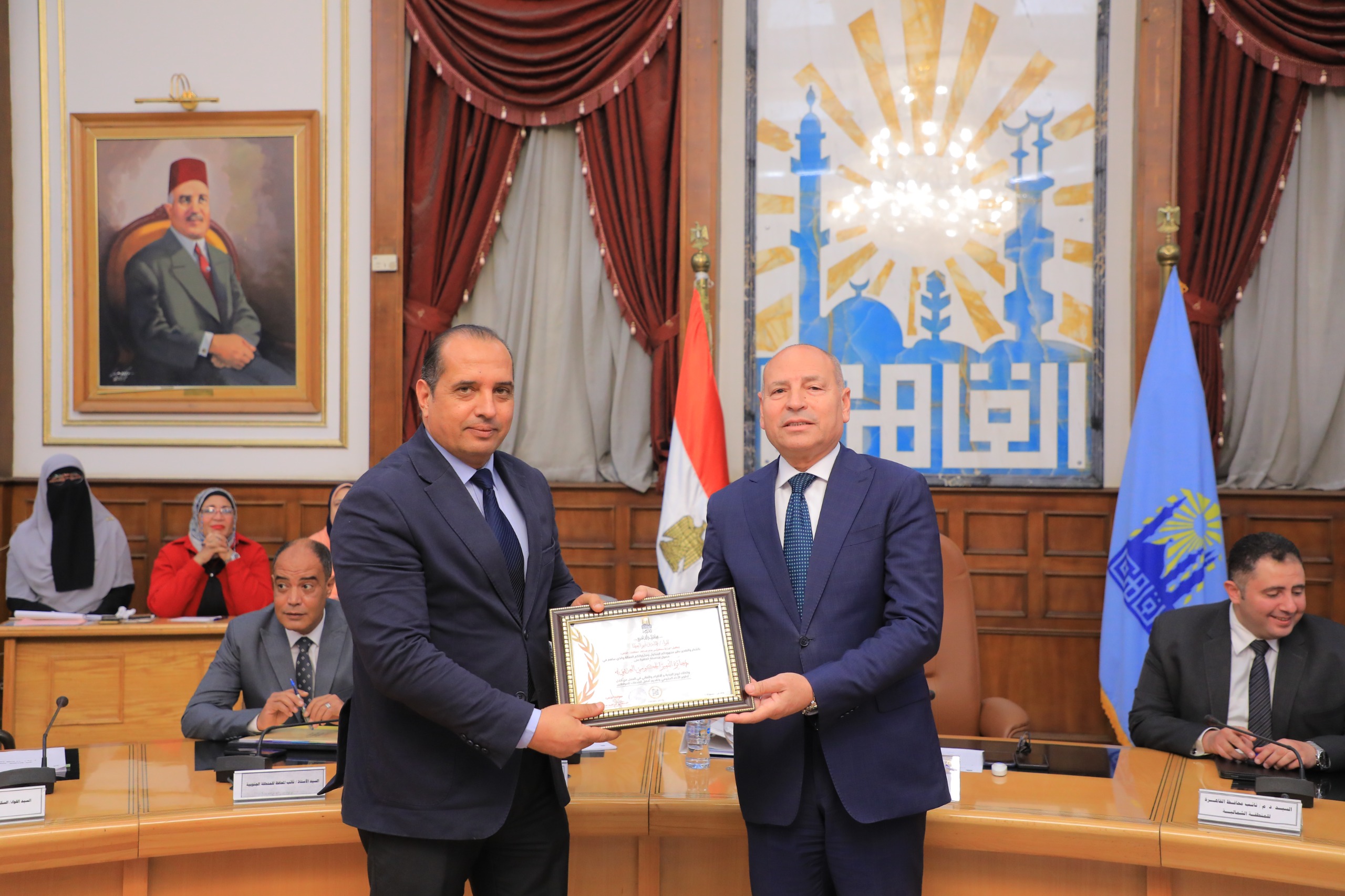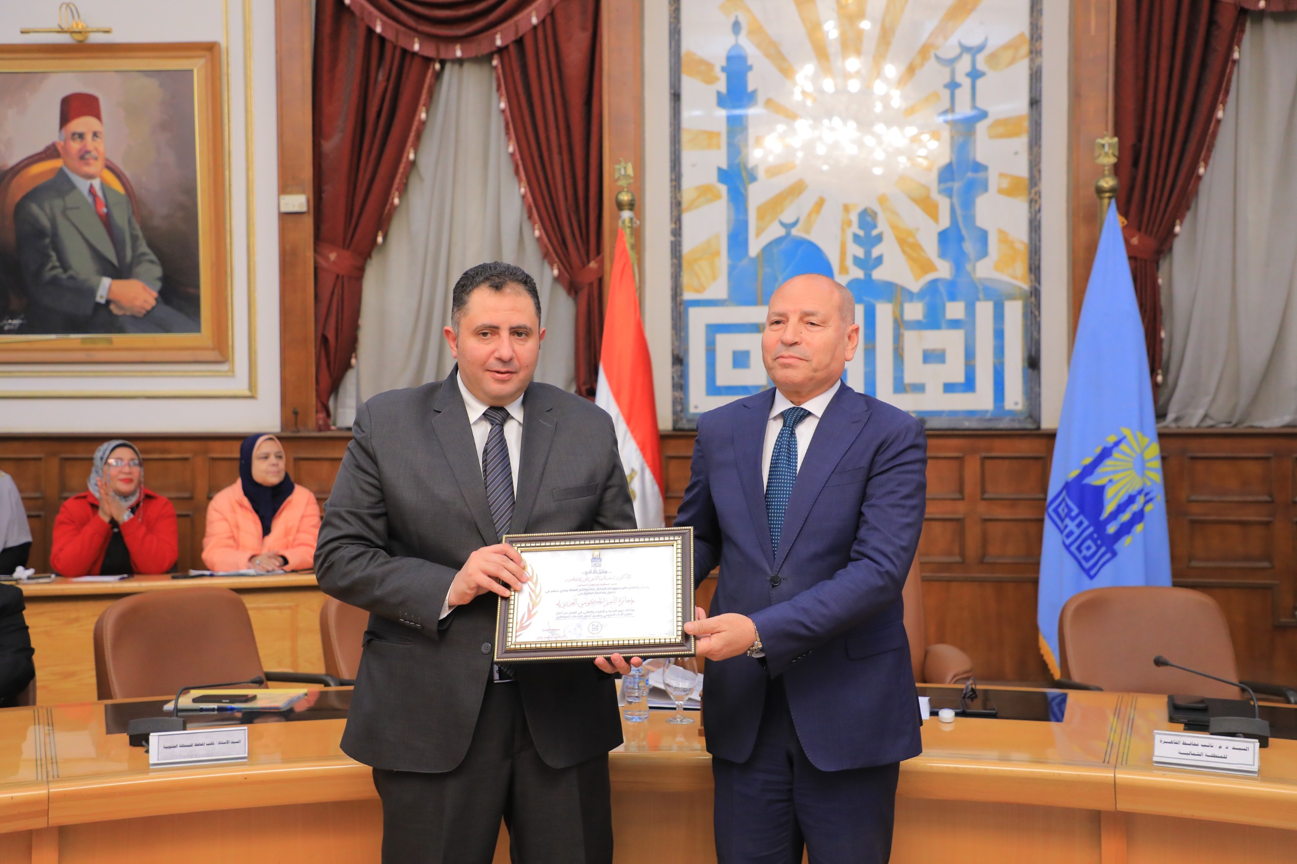 كما قام د. إبراهيم صابر محافظ القاهرة بتكريم كل من اللواء إبراهيم عبدالهادي نائب المحافظ للمنطقة الغربية، ود. حسام الدين فوزى نائب المحافظ للمنطقة الشمالية، وم. منى البطراوى نائب المحافظ للمنطقة الشرقية، وم. أشرف منصور نائب المحافظ للمنطقة الجنوبية ، واللواء يحيى الأدغم السكرتير العام، واللواء طارق ابو العطا السكرتير العام المساعد تقديرًا لاسهامهم فى حصول محافظ القاهرة على جائزة التميز الحكومي العربى كأفضل محافظ على مستوى الدول العربية لعام ٢٠٢٤- ٢٠٢٥ ، وفوز مشروع مدينة الأسمرات بجائزة أفضل مبادرة تنمية مجتمع محلى في الوطن العربي.