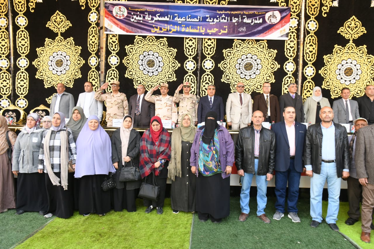 بحضور اللواء أ.ح. أحمد مصطفى قائد قطاع التربية العسكرية، والعميد الهيثم عواد المستشار العسكري للمحافظة، والمهندس محمد الرشيدي وكيل وزارة التربية والتعليم، والأستاذ أمير مينا مدير المدرسة، والأستاذ محمد الدسوقي رئيس مركز ومدينة أجا.