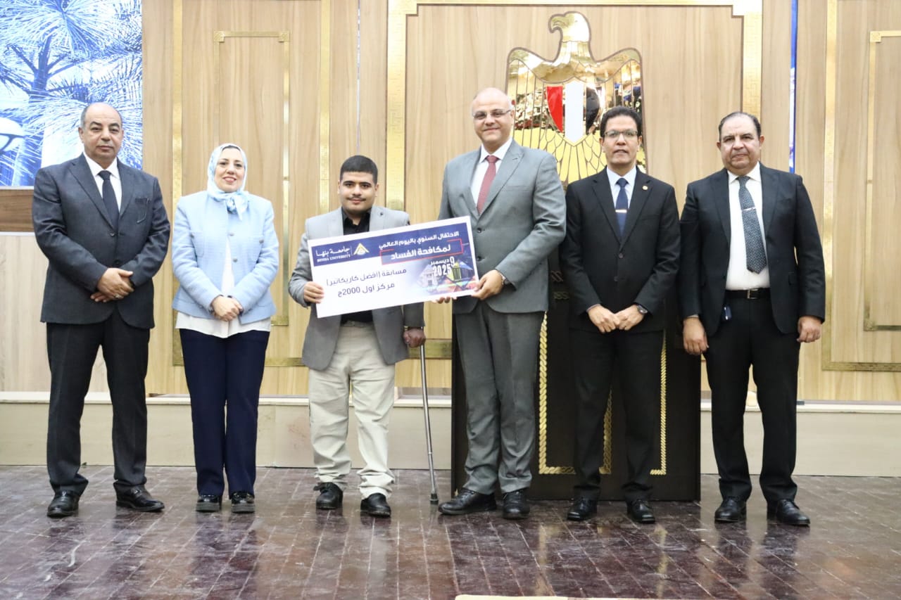 كما أكد رئيس جامعة بنها، الأستاذ الدكتور ناصر الجيزاوي، أن الفساد يمثل أحد التحديات المؤثرة على مسار التنمية، مشدداً على أن مكافحته تبدأ بغرس القيم الأخلاقية في نفوس الطلاب وتأهيلهم ليكونوا قادة المستقبل. وأوضح أن الجامعة تبنت عدة خطوات عملية لتعزيز النزاهة، من بينها تطوير منظومة التحول الرقمي في الخدمات الإدارية والطلابية للحد من التدخل البشري، إلى جانب تنظيم الندوات وورش العمل لنشر ثقافة الحوكمة والشفافية بين جميع منسوبي الجامعة.