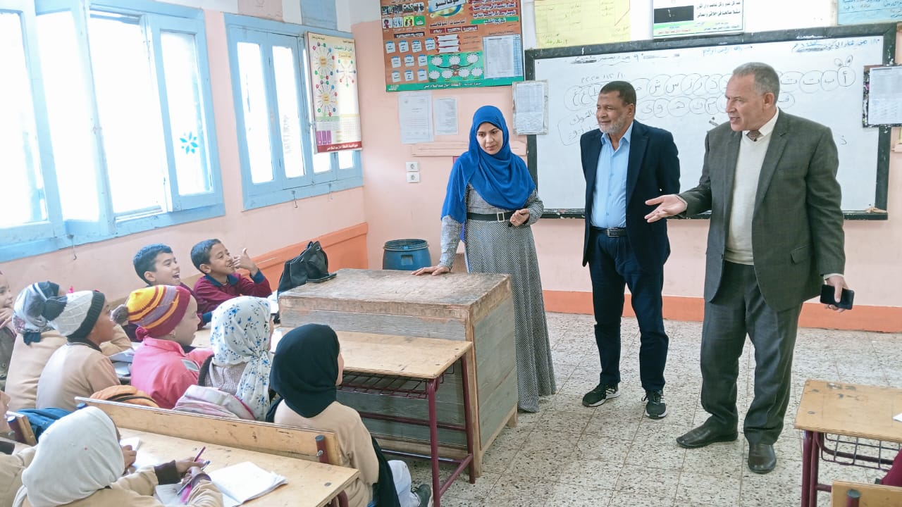 كما استكمل وكيل الوزارة جولته بتفقد فصول مدرسة عزبة محبوب الابتدائية المشتركة والتى تعمل بنظام الفترتين الصباحية والمسائية ويبلغ عدد فصولها 14 فصل دراسى منهم 7 فصول بالفترة المسائية وتفقد بعض الفصول وتابع انتظام الدراسة والتزام المعلمين بتطبيق لائحة الانضباط المدرسى والتحفيز التربوى واطمأن على مستوى الطلاب داخل الفصول وخاصة تطبيق برامج القرائية لتنمية مهارات القراءة والكتابة للطلاب وتابع بعض سجلات الدرجات والتقييمات الاسبوعية والاداءات الصفية والسلوك والمواظبة للطلاب