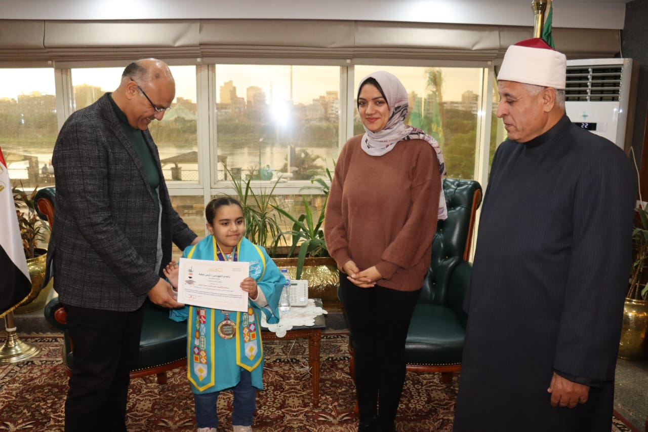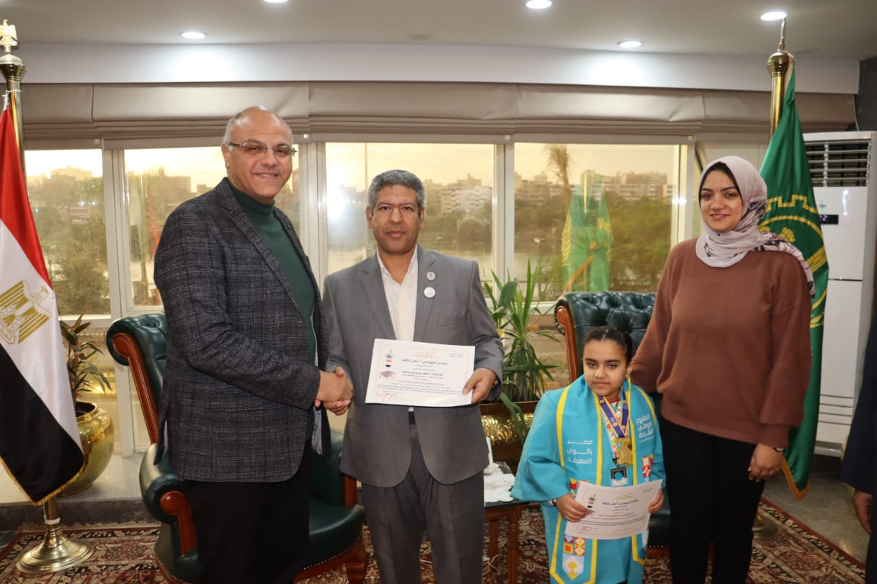 محافظ القليوبية يُكرِم الطالبة مريم إبراهيم بعد فوزها بالمركز الثاني على مستوى الجمهورية في المشروع الوطني للقراءة وحصولها على المركز السابع في ”تحدي القراءة العربي”