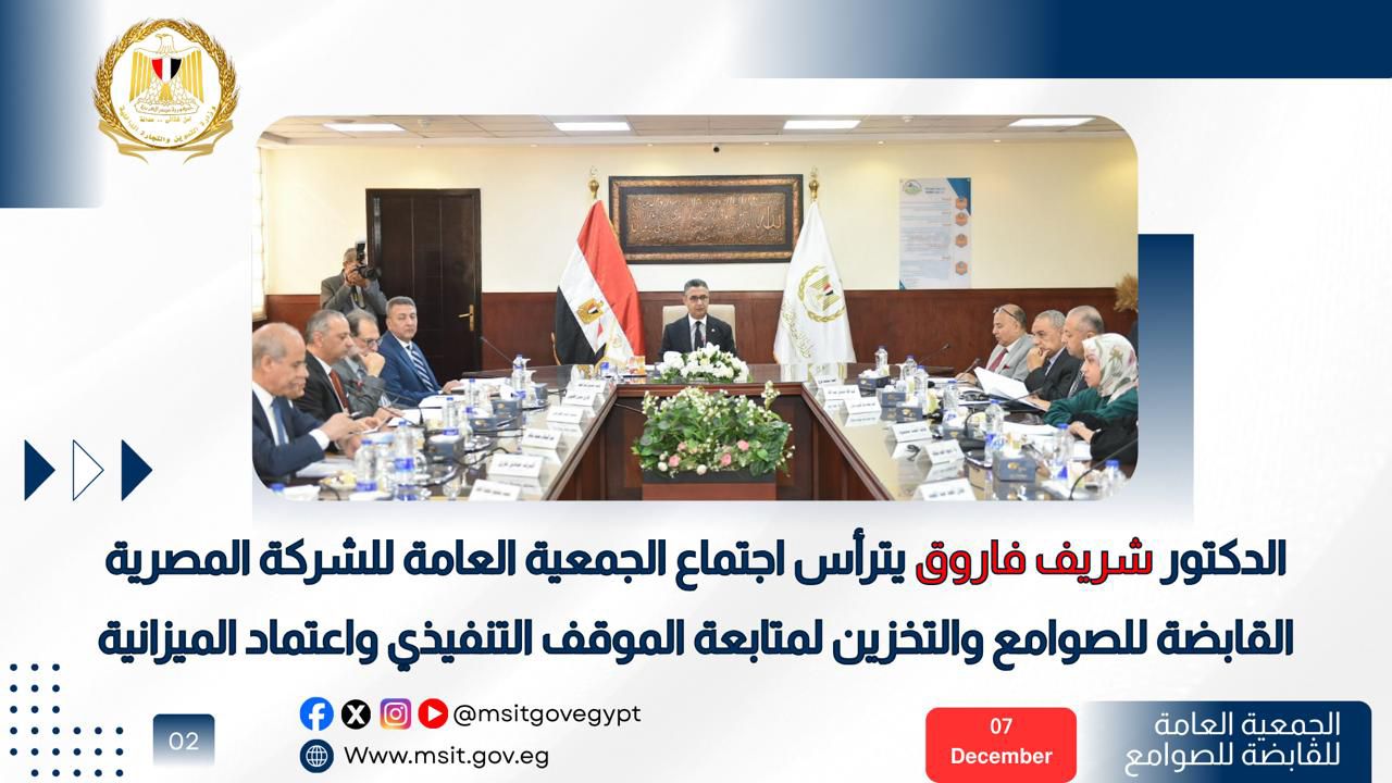 ترأس الدكتور شريف فاروق، وزير التموين والتجارة الداخلية، اجتماع الجمعية العامة للشركة المصرية القابضة للصوامع والتخزين، وذلك في إطار متابعة سير العمل والموقف التنفيذي لمشروعات الشركة، واعتماد ميزانية العام المالي الحالي، بحضور أعضاء الجمعية العامة ومجلس إدارة الشركة.
