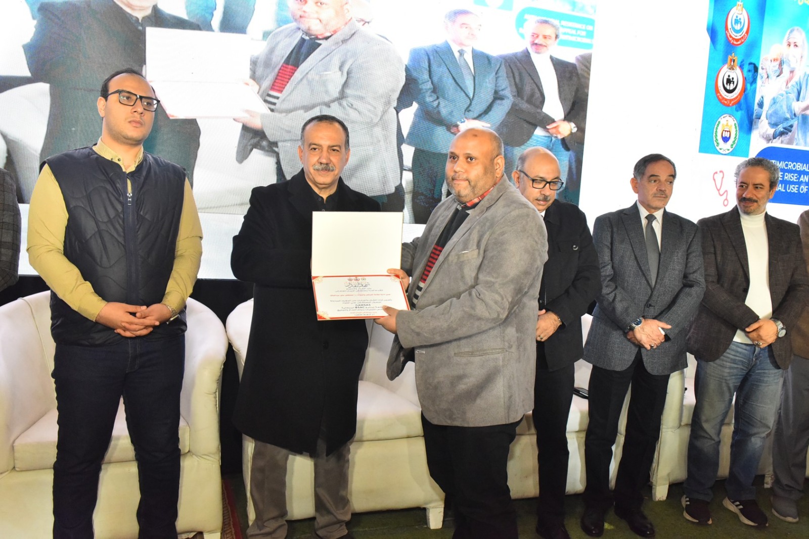 جاء ذلك بحضور الدكتور مينا عماد نائب المحافظ، والدكتور محمد زين وكيل وزارة الصحة والسكان والدكتور أحمد عثمان رئيس فرع التأمين الصحي بوسط الصعيد، والدكتور محمد جمال وكيل المديرية للشؤون العلاجية، والدكتور أحمد سيد وكيل المديرية للشؤون الوقائية، والدكتور عصام نبيل مدير عام الطب العلاجي، والدكتور ضياء عبدالحميد نقيب الأطباء والدكتور علاء حيالله نقيب الصيادلة والدكتور خالد عبد العزيز مدير عام مستشفى أسيوط الجامعي إضافة قيادات مديرية الصحة ومستشفى الإيمان العام.