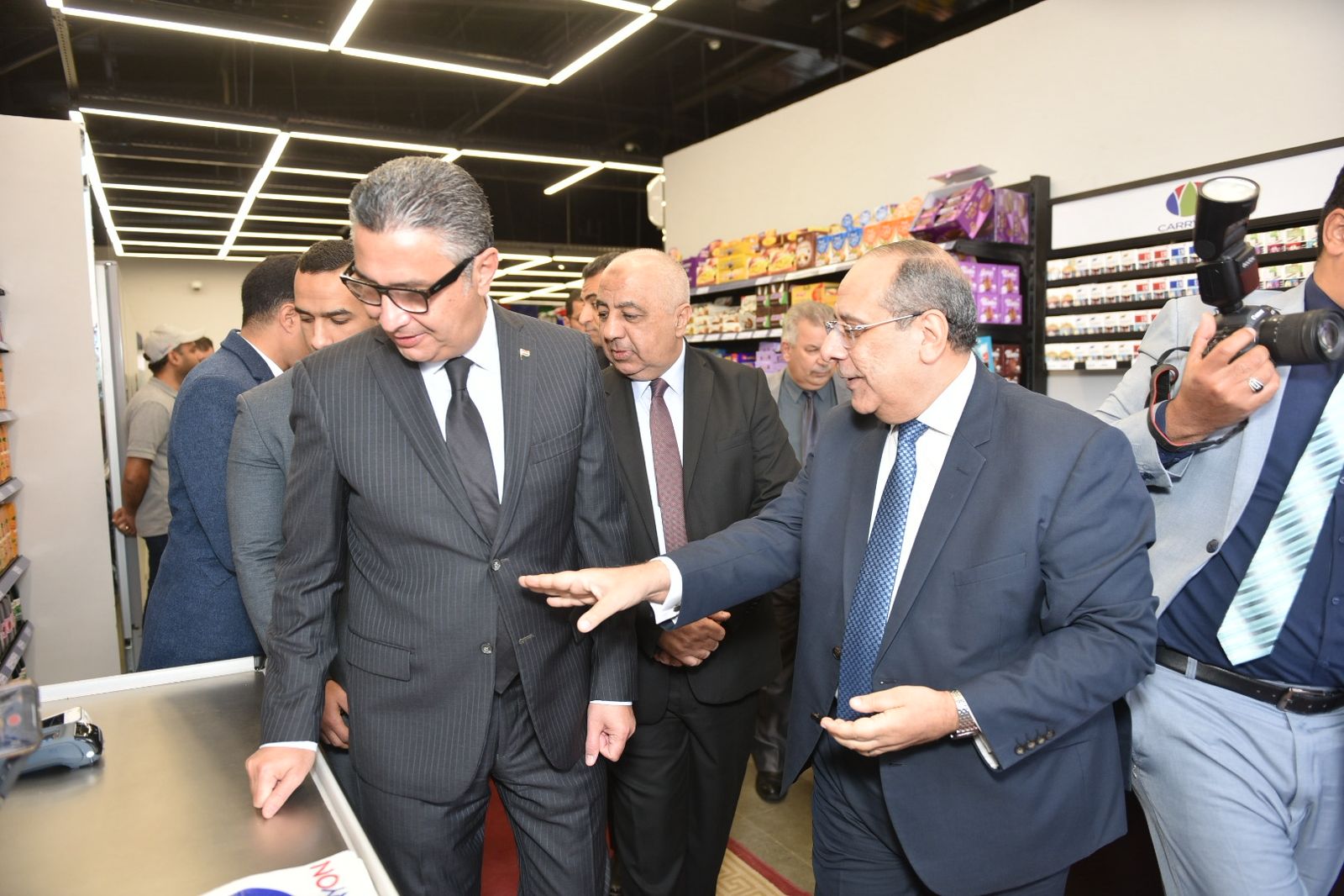 افتتح الدكتور شريف فاروق، وزير التموين والتجارة الداخلية، اليوم، الفرع الرابع لمنافذ وزارة التموين تحت العلامة التجارية الموحدة «كاري أون»، وذلك بمقر مدينة الإنتاج الإعلامي بمحافظة الجيزة، بحضور المهندس عادل النجار محافظ الجيزة، والسيد عبد الفتاح الجبالي رئيس مجلس إدارة مدينة الإنتاج الإعلامي، واللواء وليد أبو المجد نائب وزير التموين، والسيد أيمن إسماعيل رئيس مجلس الإدارة للشركة القابضة للصناعات الغذائية، والدكتور علاء ناجي العضو المنتدب الرئيس التنفيذي للشركة القابضة للصناعات الغذائية، والأستاذ أحمد كمال مساعد الوزير والمتحدث الرسمي للوزارة، والأستاذة سارة العزازي رئيس الإدارة المركزية لشئون مكتب الوزير.