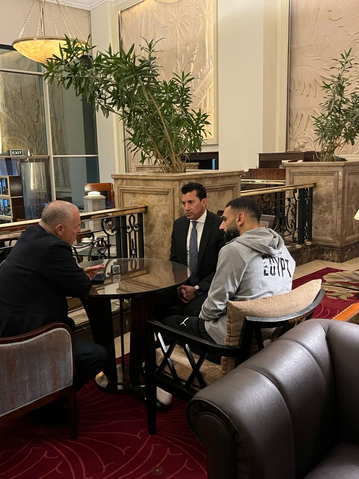 وعقب استقبال وزير الشباب والرياضة داخل معسكر المنتخب الوطني، توجه المهندس هاني أبو ريدة، رئيس الاتحاد المصري لكرة القدم، مباشرة إلى مطار القاهرة، متجهًا إلى دولة قطر لحضور اجتماعات الاتحاد الدولي لكرة القدم «فيفا»، على أن يتوجه بعدها إلى المملكة المغربية للالتحاق ببعثة المنتخب المصري المشاركة في بطولة كأس الأمم الأفريقية.