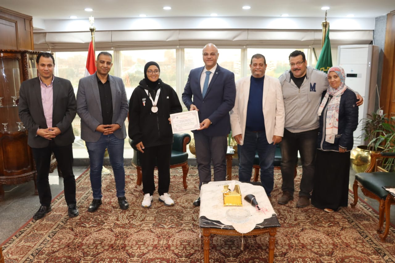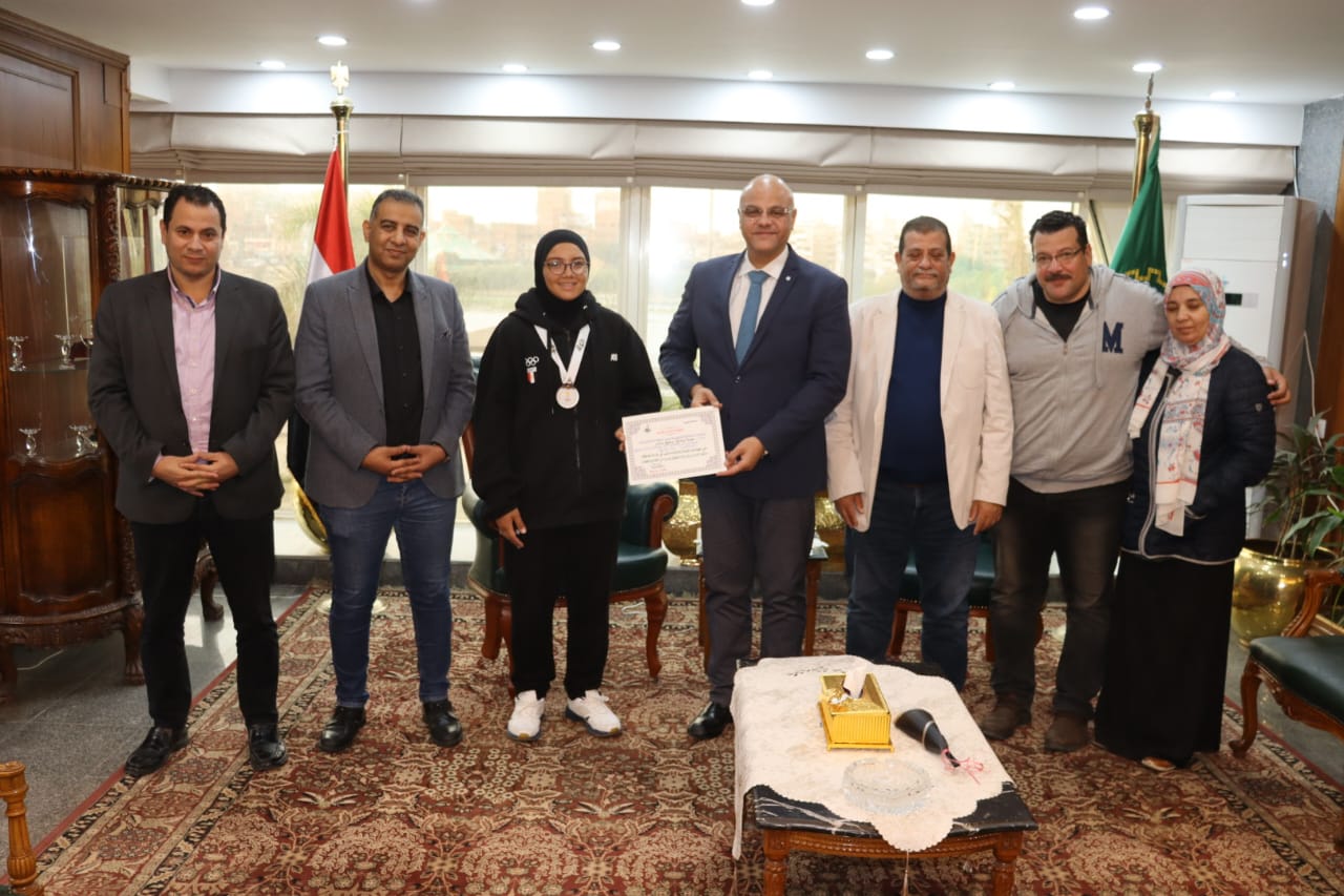 بالصور .. محافظ القليوبية يكرم البطلة جنة صليح لحصولها على برونزية قذف القرص بدورة الألعاب الأفريقية