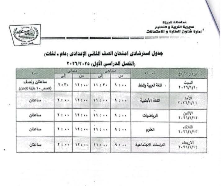 الرئيسية التعليم محافظ الجيزة يعتمد جداول إمتحانات الفصل الدراسي الأول للصفوف الدراسية .. أعرف التفاصيل الخميس 18 ديسمبر 2025 07:44 مـ 27 جمادى آخر 1447 هـ جمال الدالى محافظة الجيزة