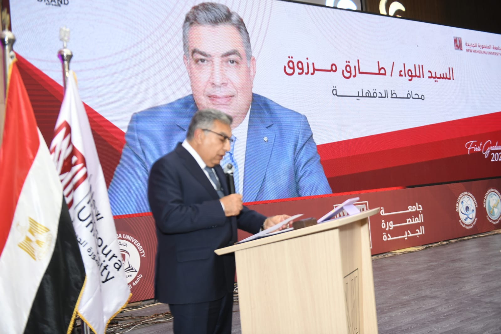 شهد اللواء طارق مرزوق محافظ الدقهلية، والدكتور أيمن عاشور وزير التعليم العالي والبحث العلمي، احتفال تخرج الدفعة الأولى من جامعة المنصورة الجديدة للكليات ذات الأربع سنوات دراسية، بحضور الدكتور معوض الخولي رئيس جامعة المنصورة الجديدة، والدكتورة نادية زخاري رئيس مجلس الأمناء، والدكتور شريف خاطر رئيس جامعة المنصورة، والدكتور أحمد الشعراوي نائب رئيس مجلس الأمناء ومحافظ الدقهلية الأسبق، وأعضاء مجلس الأمناء وعمداء الكليات وأعضاء هيئة التدريس، والخريجين والخريجات وأسرهم.