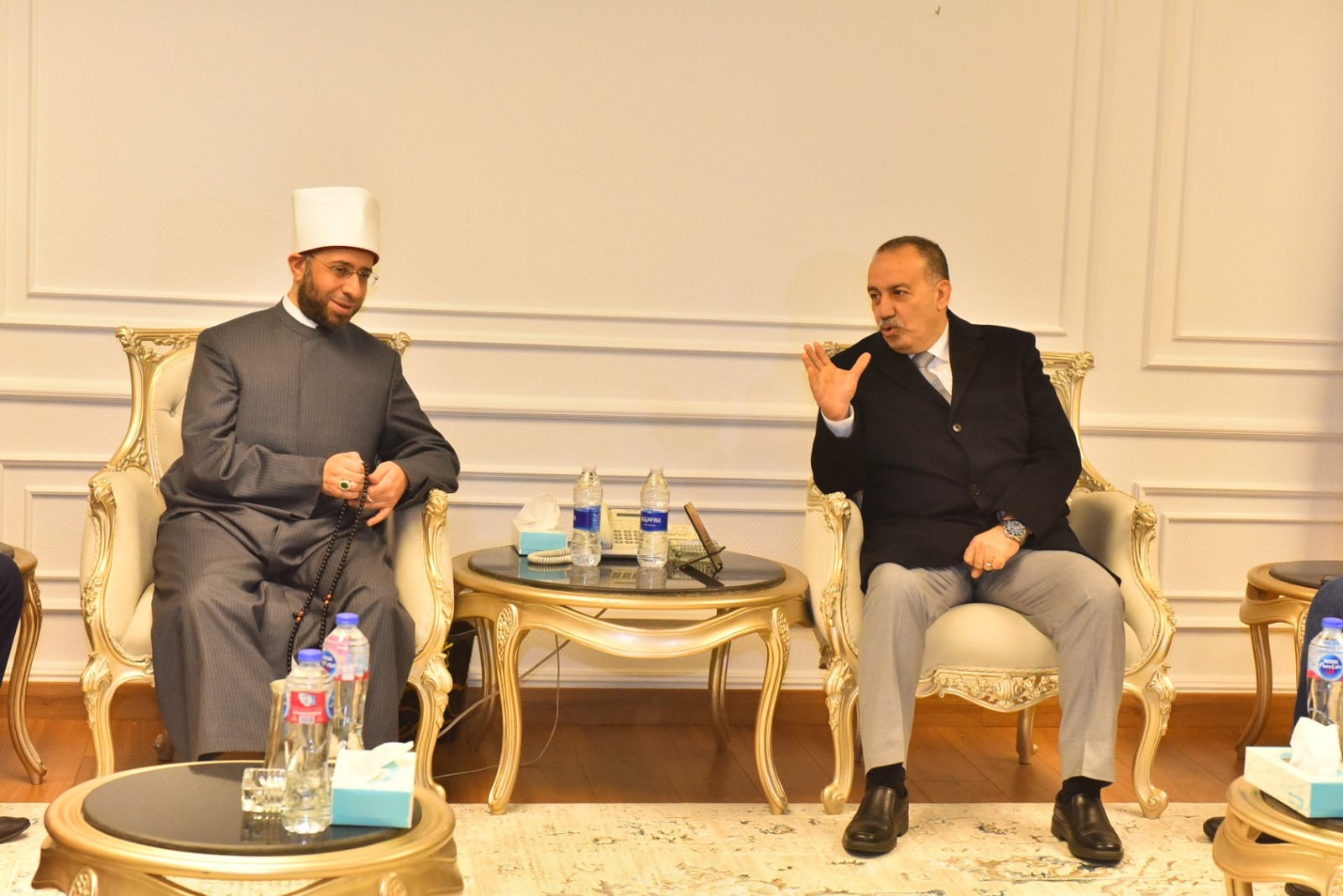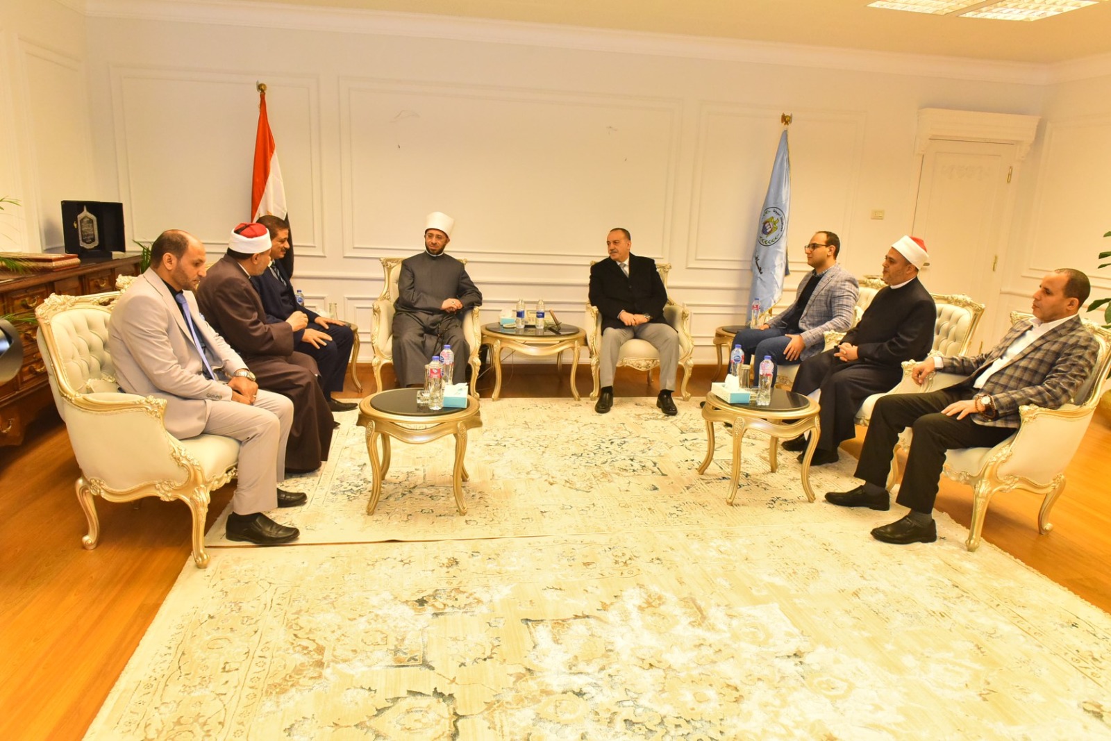 وشهد اللقاء مناقشة عدد من الملفات ذات الاهتمام المشترك، وبحث آفاق التعاون في المجالات الثقافية والتوعوية، ودور المساجد في بناء الوعي ونشر القيم الدينية والوطنية، ودعم جهود التنمية الشاملة، إلى جانب استعراض خطة تطوير وإنشاء المساجد بالمحافظة، وما تحقق من مشروعات تنموية وخدمية في هذا الإطار.