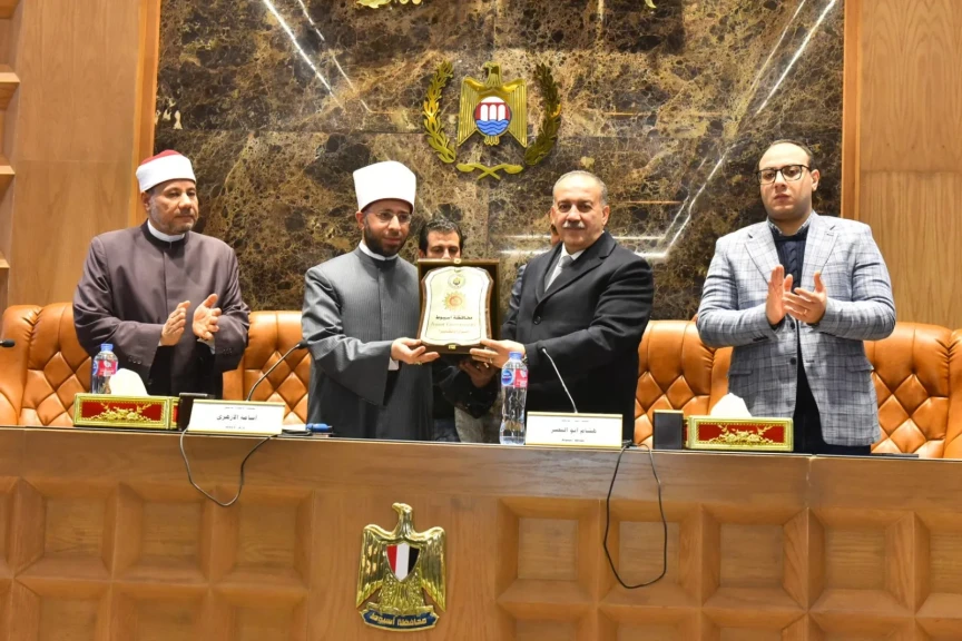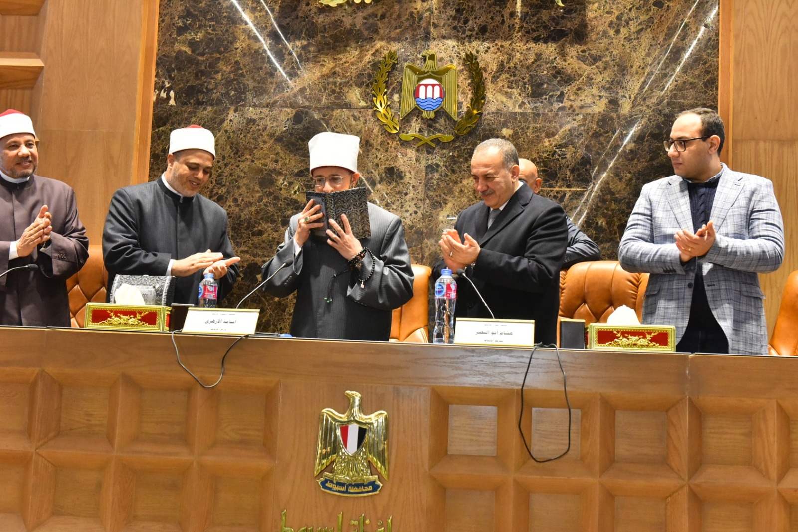 وفي نهاية اللقاء، تبادل محافظ أسيوط ووزير الأوقاف الدروع التذكارية تقديرًا للجهود المبذولة، كما قدم الدكتور عيد علي خليفة وكيل وزارة الأوقاف بأسيوط المصحف الشريف إهداءً لوزير الأوقاف، تقديرًا لزيارته ودعمه المتواصل لأئمة المحافظة.