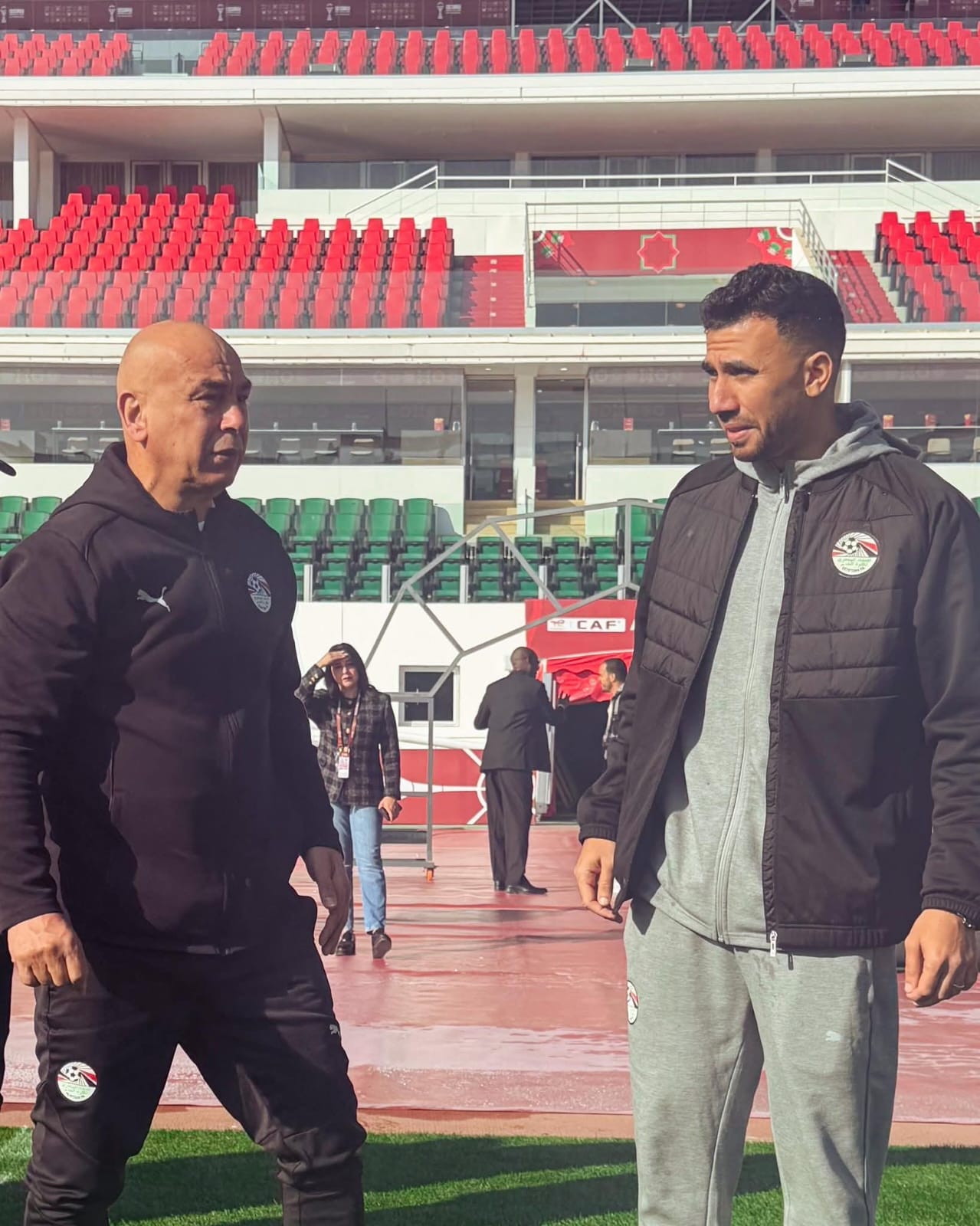 تفقد الجهاز الفني لمنتخب مصر الأول لكرة القدم بقيادة حسام و إبراهيم حسن ، أرضية استاد " الملعب الكبير بأكادير " الذي يستضيف مباراة زيمبابوي المقرر لها العاشرة مساء غد - بتوقيت القاهرة - في الجولة الأولي لدور المجموعات بكأس الأمم الأفريقية.