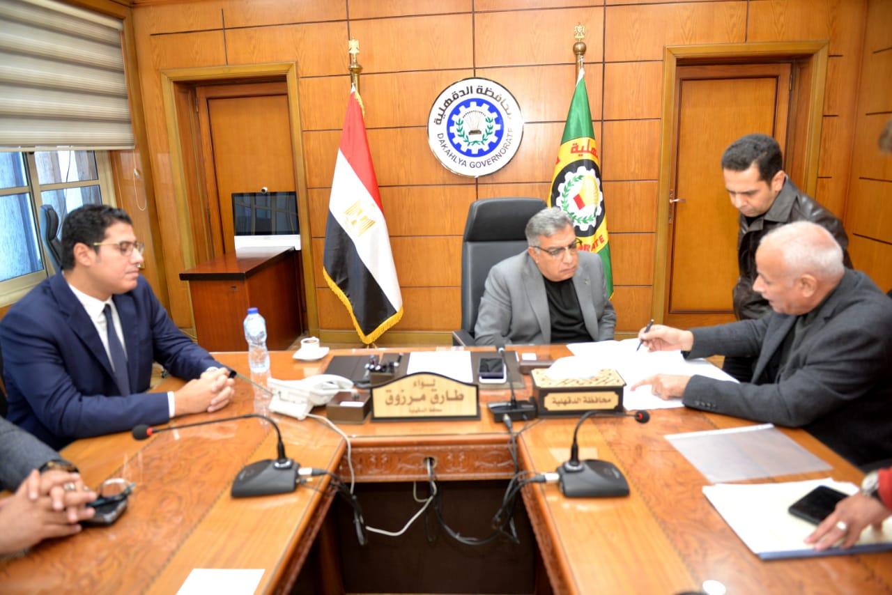 محافظ الدقهلية يعقد اجتماعا لمناقشة أنسب الحلول لمنع تسرب مياه الصرف الصحي بقرية دنجواي مركز شربين