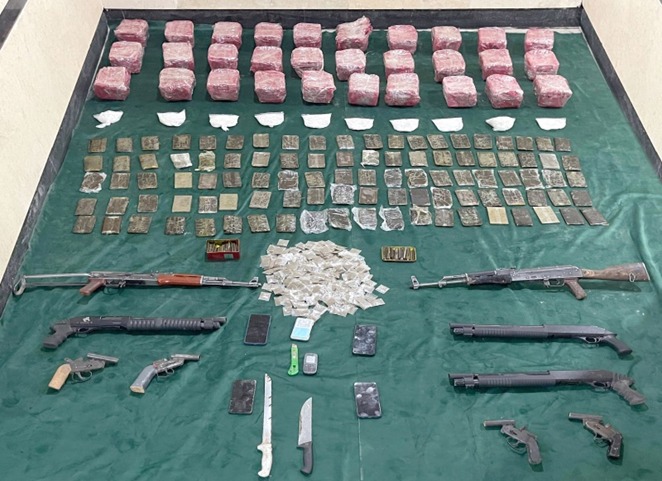 فى إطار مواصلة وزارة الداخلية توجيه الضربات الإستباقية للبؤر الإجرامية جالبى ومتجرى المواد المخدرة والأسلحة النارية غير المرخصة .. فقد أكدت معلومات وتحريات قطاعى ( الأمن العام - مكافحة المخدرات والأسلحة والذخائر غير المرخصة بالتنسيق مع أجهزة الوزارة المعنية قيام بؤر إجرامية بنطاق عدد من المحافظات تضم عناصر جنائية شديدة الخطورة بجلب كميات من المواد المخدرة والأسلحة النارية غير المرخصة تمهيداً للإتجار بها وعقب تقنين الإجراءات تم إستهدافهم بمشاركة قطاع الأمن المركزى ، وقد أسفر التعامل عن مصرع 5 عناصر جنائية شديدة الخطورة وسبق الحكم عليهم بالسجن والسجن المؤبد فى جنايات "مخدرات ، سلاح نارى بدون ترخيص بنطاق محافظة "أسوان" وضبط باقى عناصر تلك البؤر.. وبحوزتهم قرابة 1,5 طن من المواد المخدرة المتنوعة حشيش ، هيدرو ، شابو ، هيروين ، أفيون و71 قطعة سلاح نارى متنوعة هذا وتقدر القيمة المالية للمواد المخدرة المضبوطة أكثر من 103 مليون جنيه.