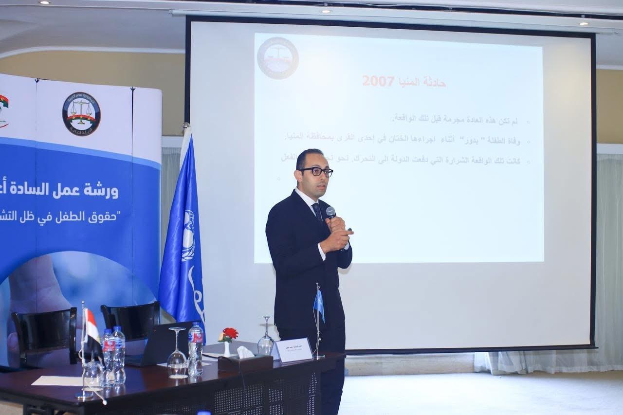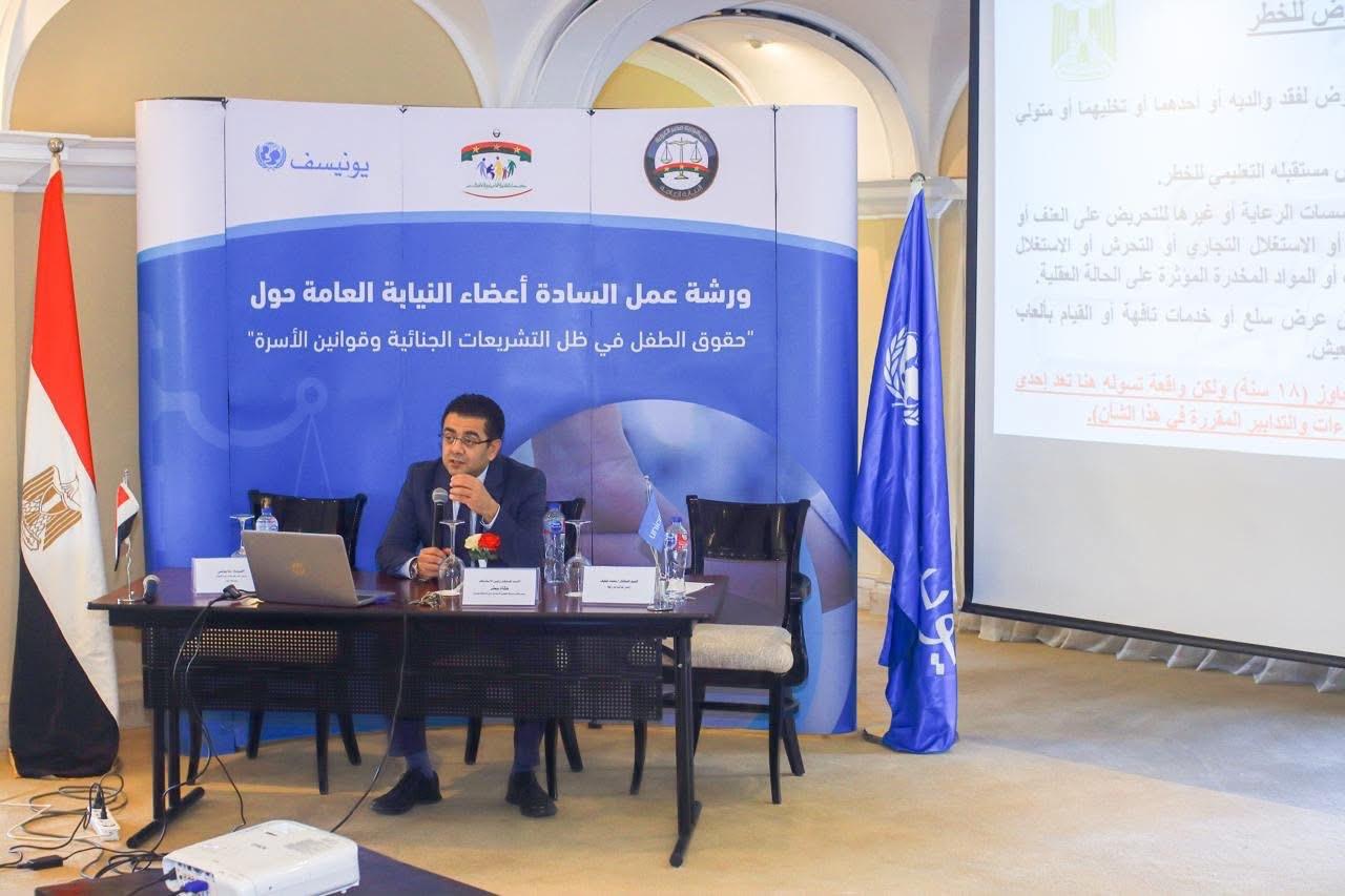 في إطار توجيهات النائب العام المستشار محمد شوقي، بشأن تعزيز منظومة حماية الطفل، وتمكين أعضاء النيابة العامة من التعرف على أحدث الممارسات الوطنية والدولية في مجال حقوق الطفل، نظمت إدارة التفتيش القضائي، خلال الفترة من الرابع عشر حتى السابع عشر من شهر ديسمبر الجاري، ورشتي عمل تدريبيتين لأعضاء النيابة العامة تحت عنوان: «حقوق الطفل في ظل التشريعات الجنائية وقوانين الأسرة»، وذلك ضمن سلسلة من الفعاليات تُعقد بالتعاون مع هيئة الأمم المتحدة للطفولة «اليونيسف».