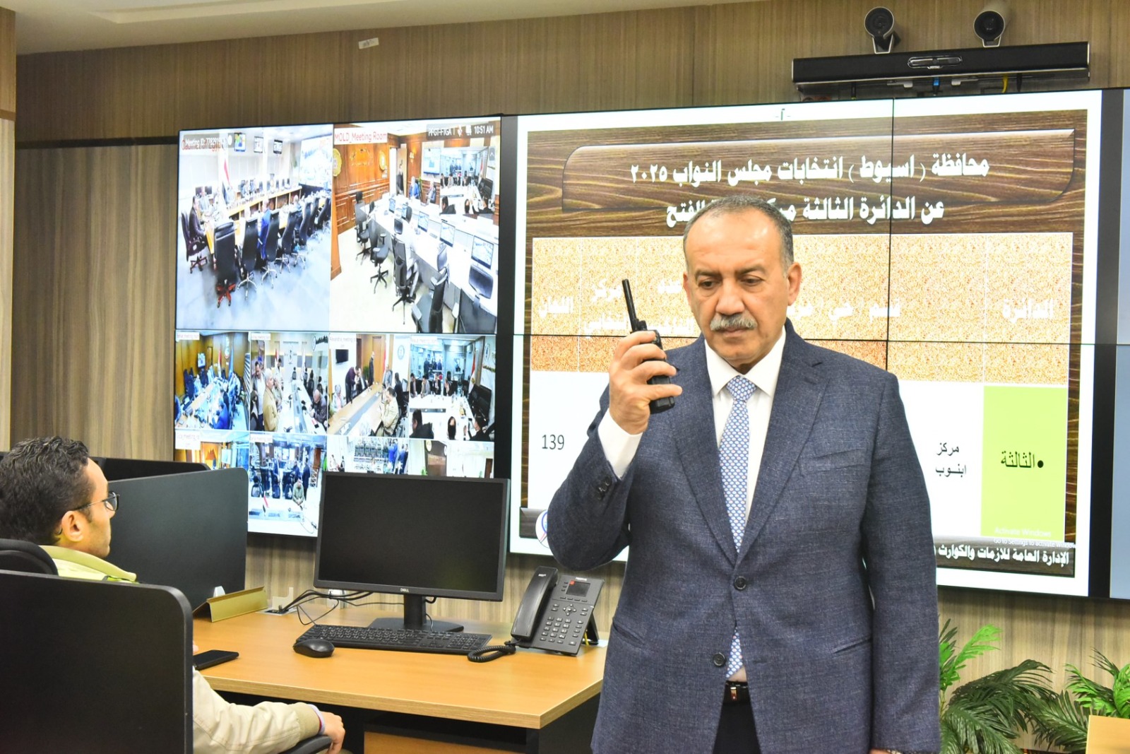 محافظ أسيوط يترأس غرفة العمليات المركزية بمركز السيطرة لمتابعة اللجان الانتخابية في جولة الإعادة بالدائرة الثالثة